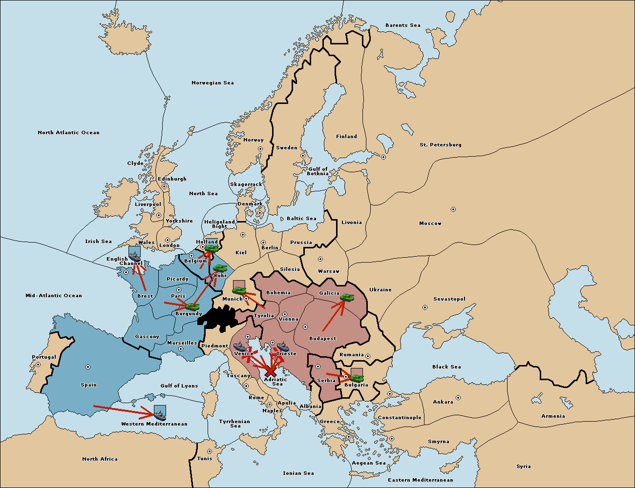 The fleet at Spain (South Coast) move to Western Mediterranean.