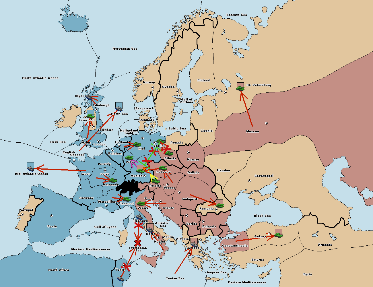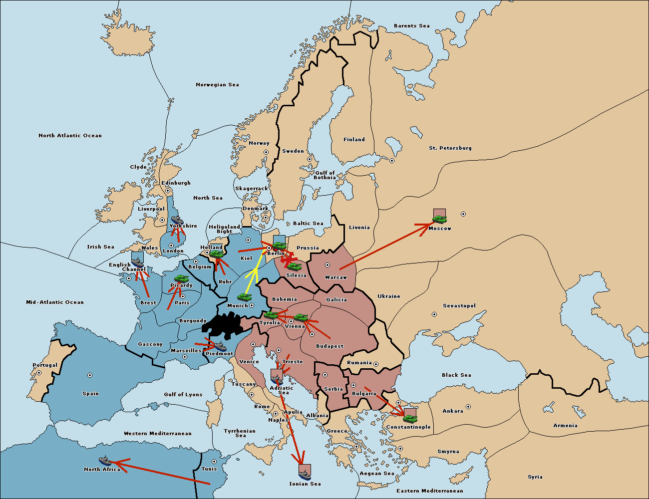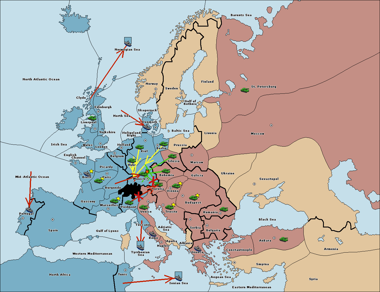 The army at Tyrolia move to Munich.