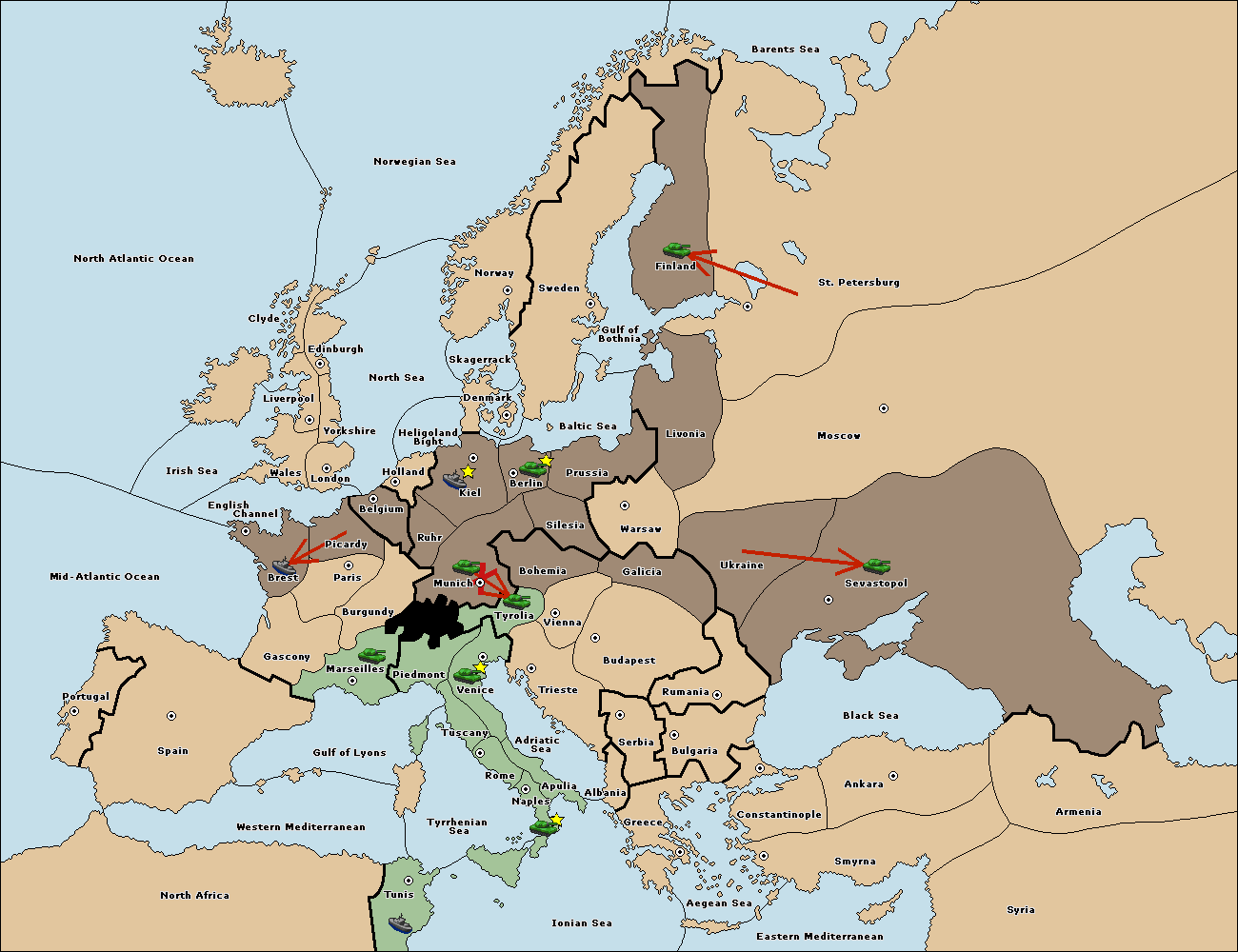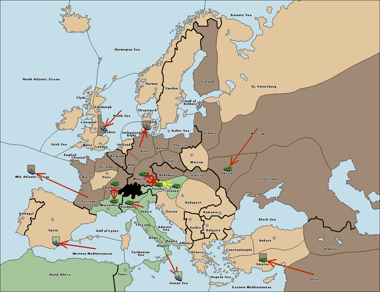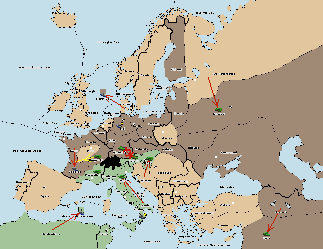 The army at Tyrolia move to Munich.