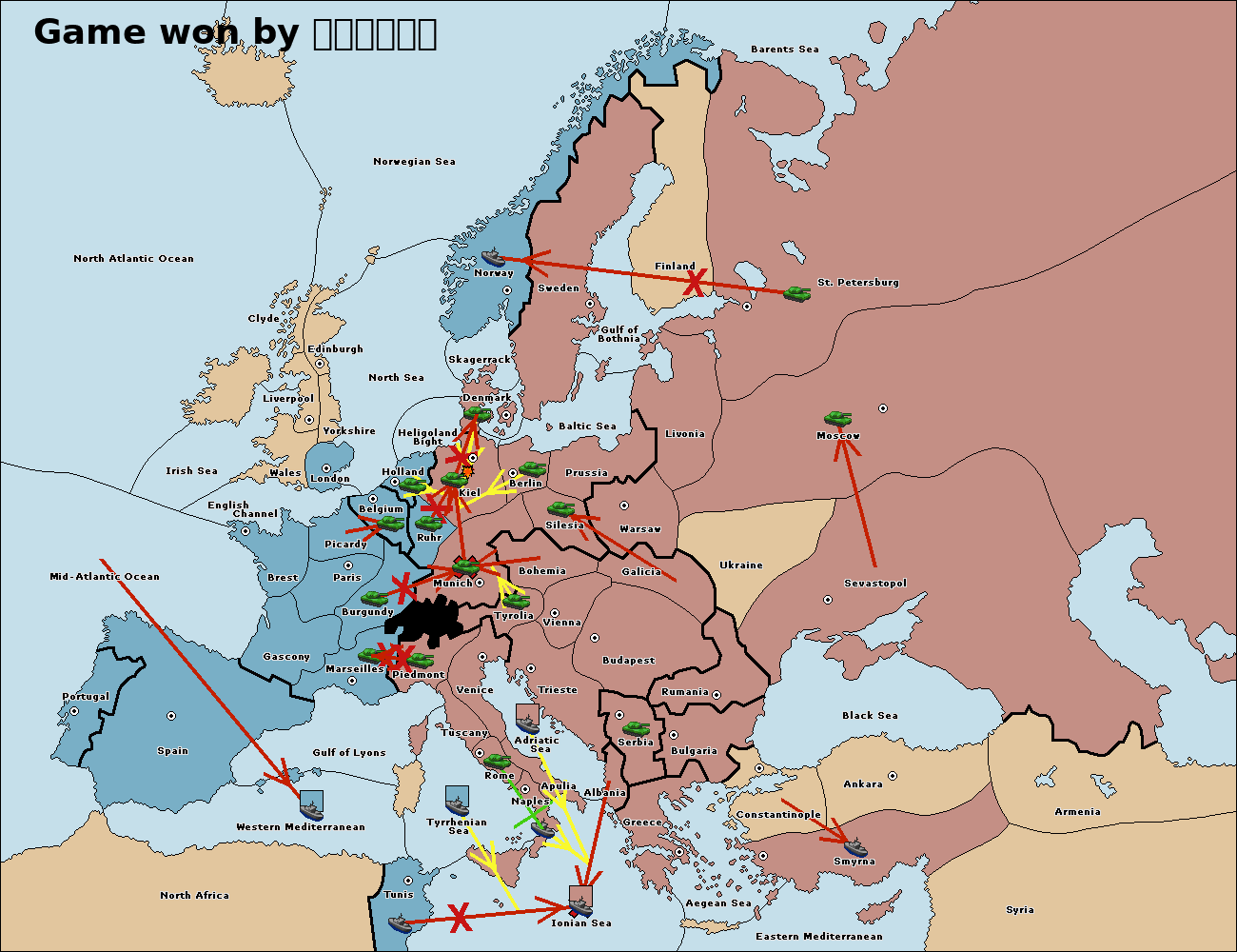 The fleet at Bulgaria (South Coast) move to Constantinople.