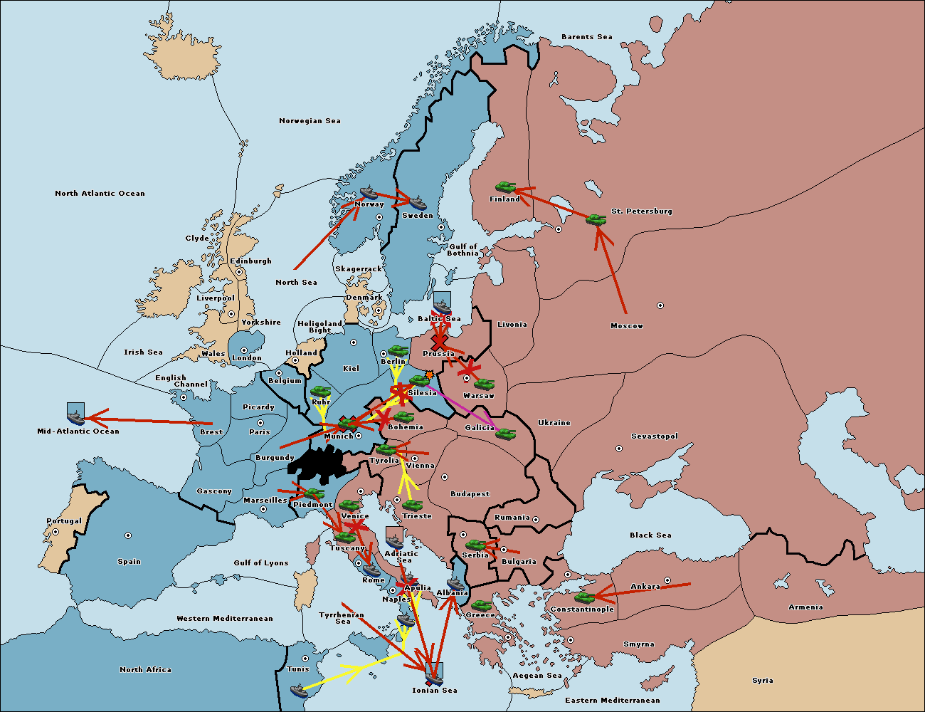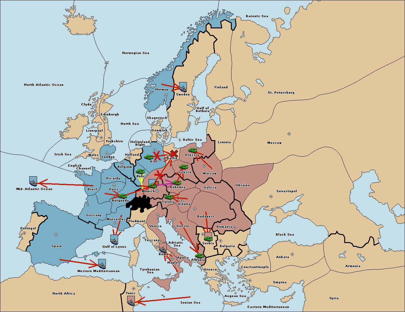 The army at Tyrolia support move to Munich from Silesia.