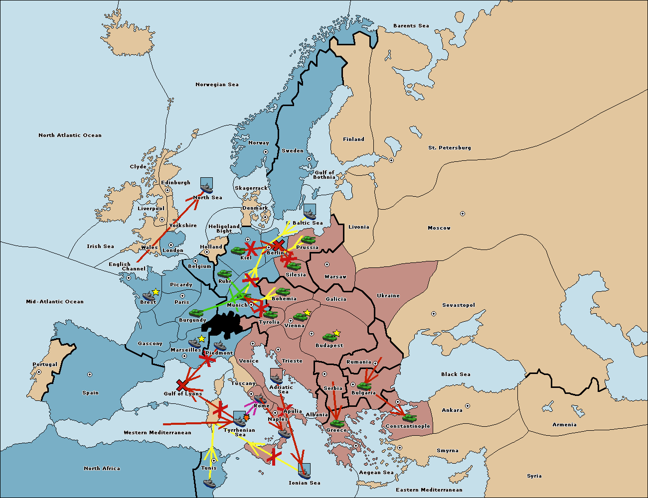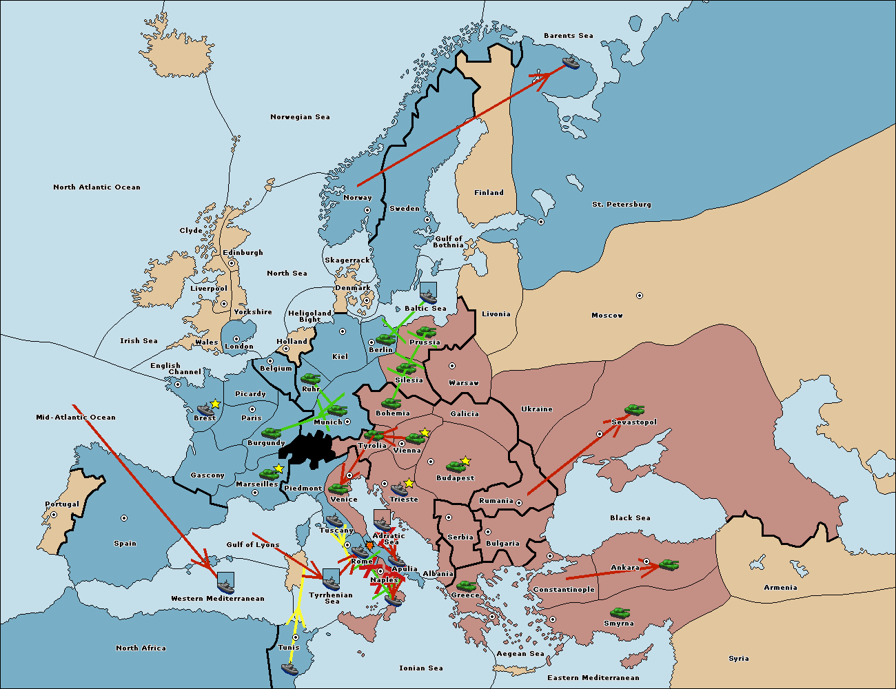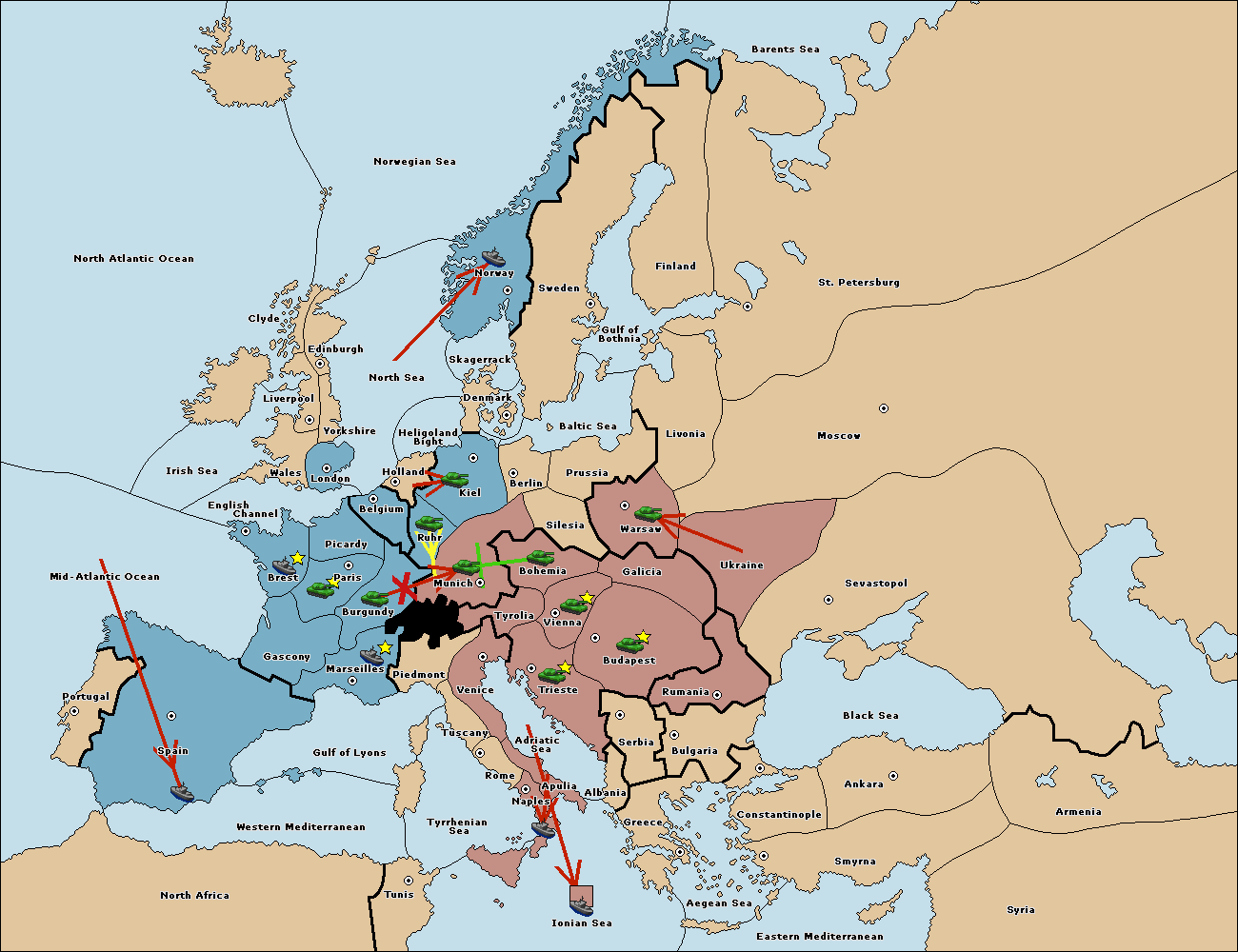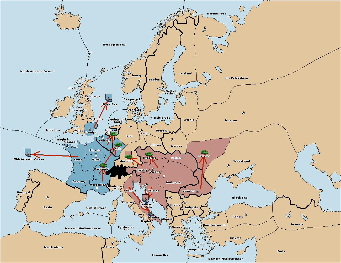 The fleet at Mid-Atlantic Ocean move to Western Mediterranean.