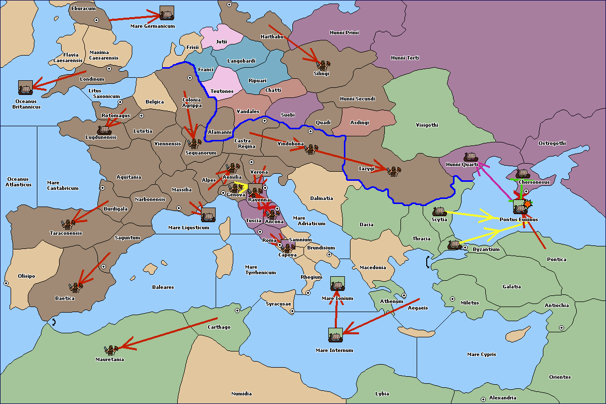 The army at Hunni Quarti support move to Ostrogothi from Hunni Terti.