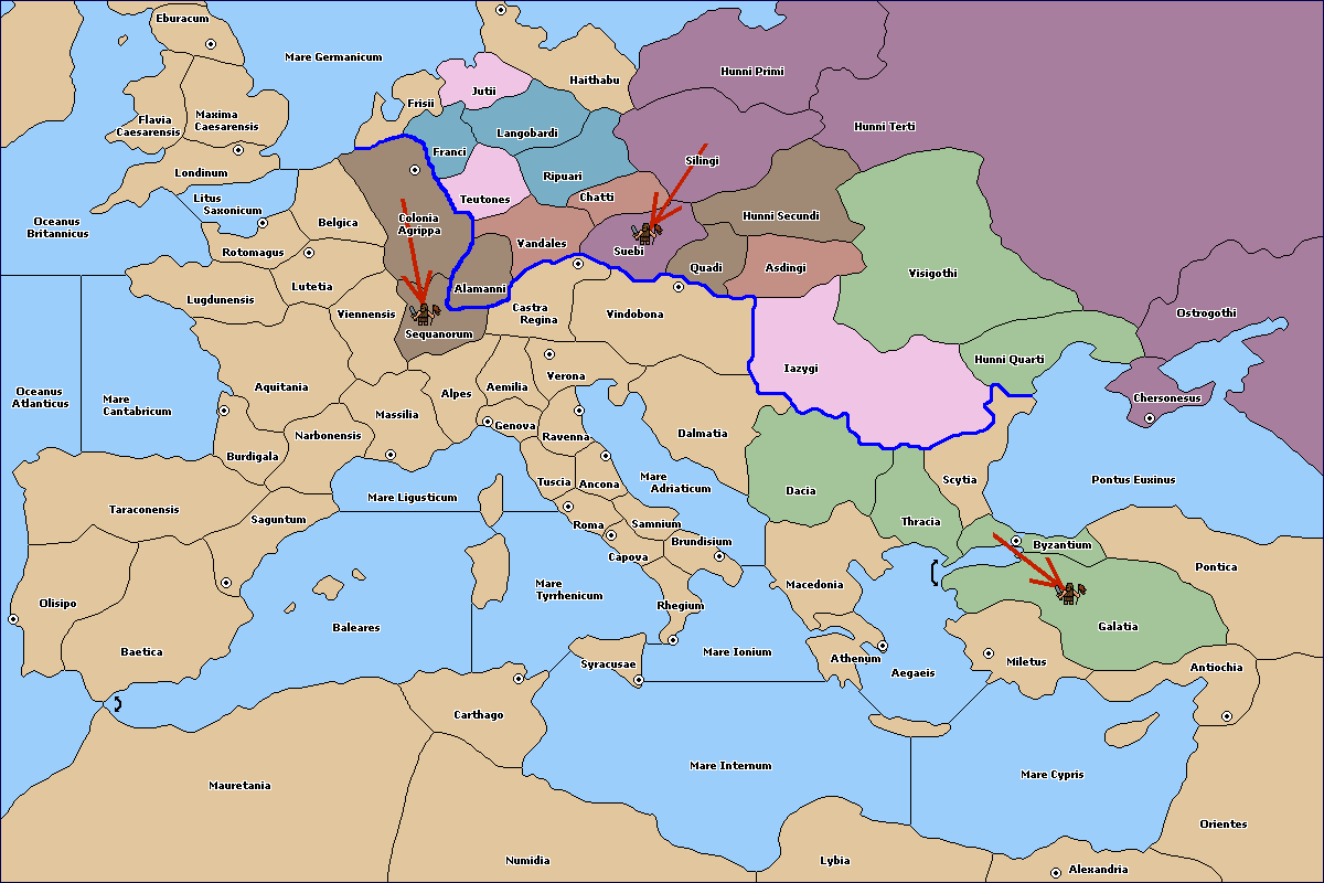 The army at Hunni Primi support move to Silingi from Hunni Secundi.