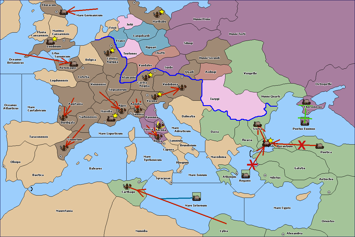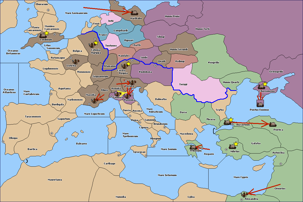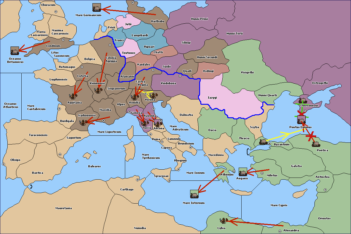 The fleet at Eburacum (East Coast) move to Mare Germanicum.