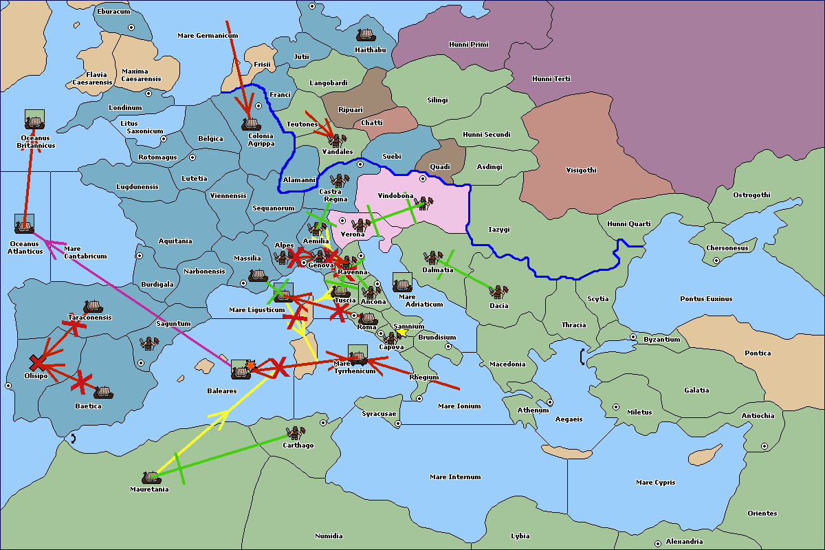 The fleet at Roma support hold to Mare Ligusticum.