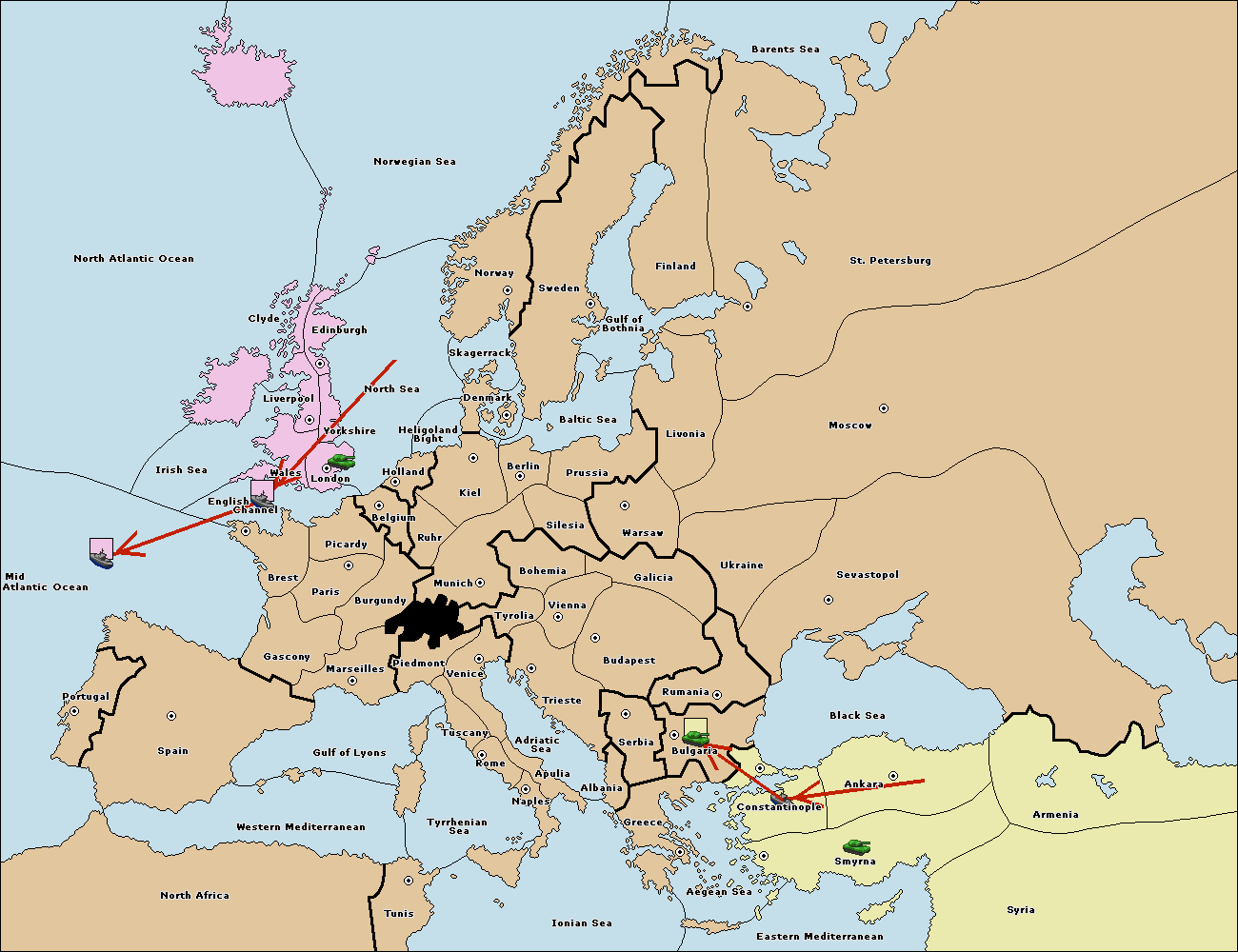 The fleet at Mid-Atlantic Ocean move to Western Mediterranean.