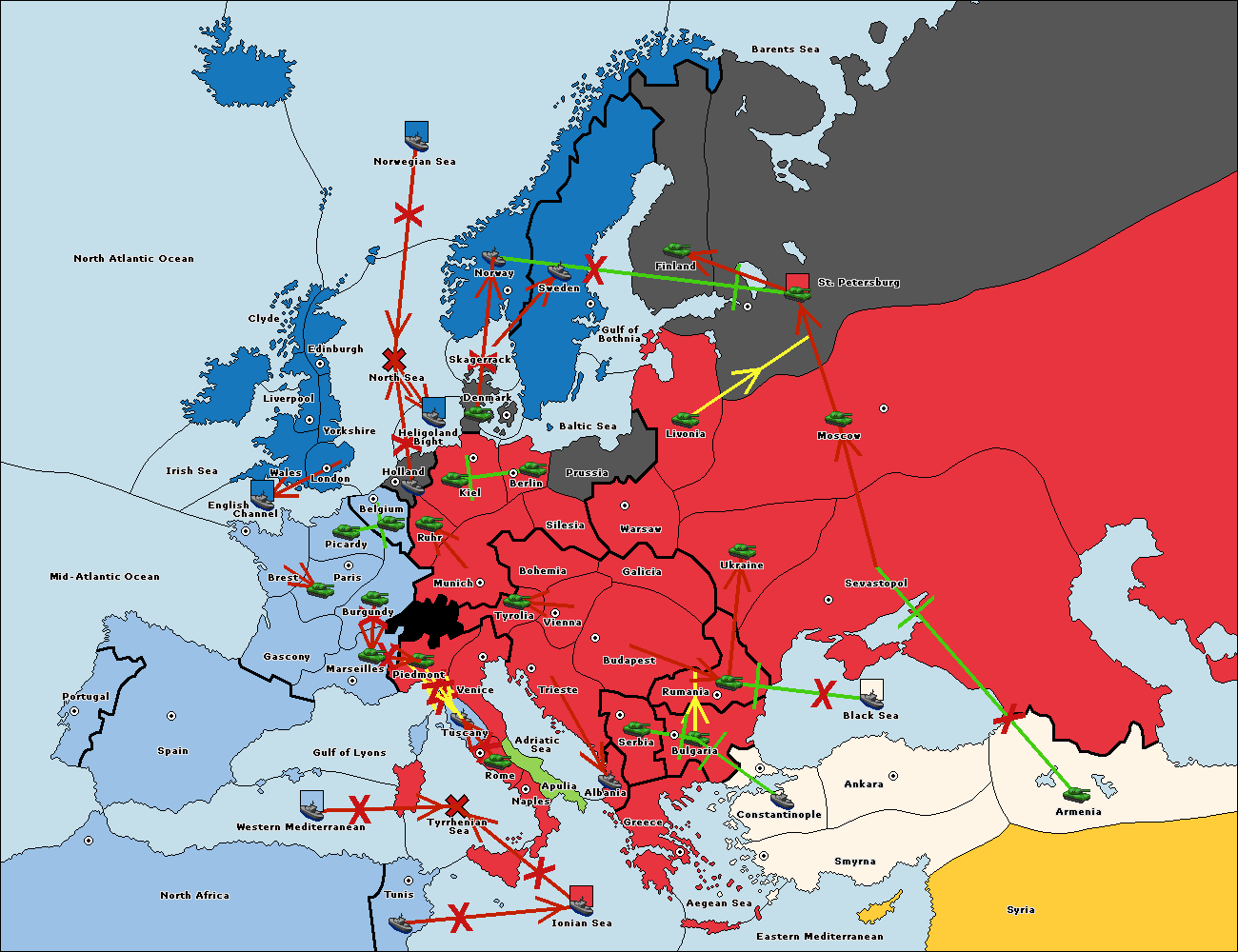 The fleet at Bulgaria (North Coast) move to Constantinople.