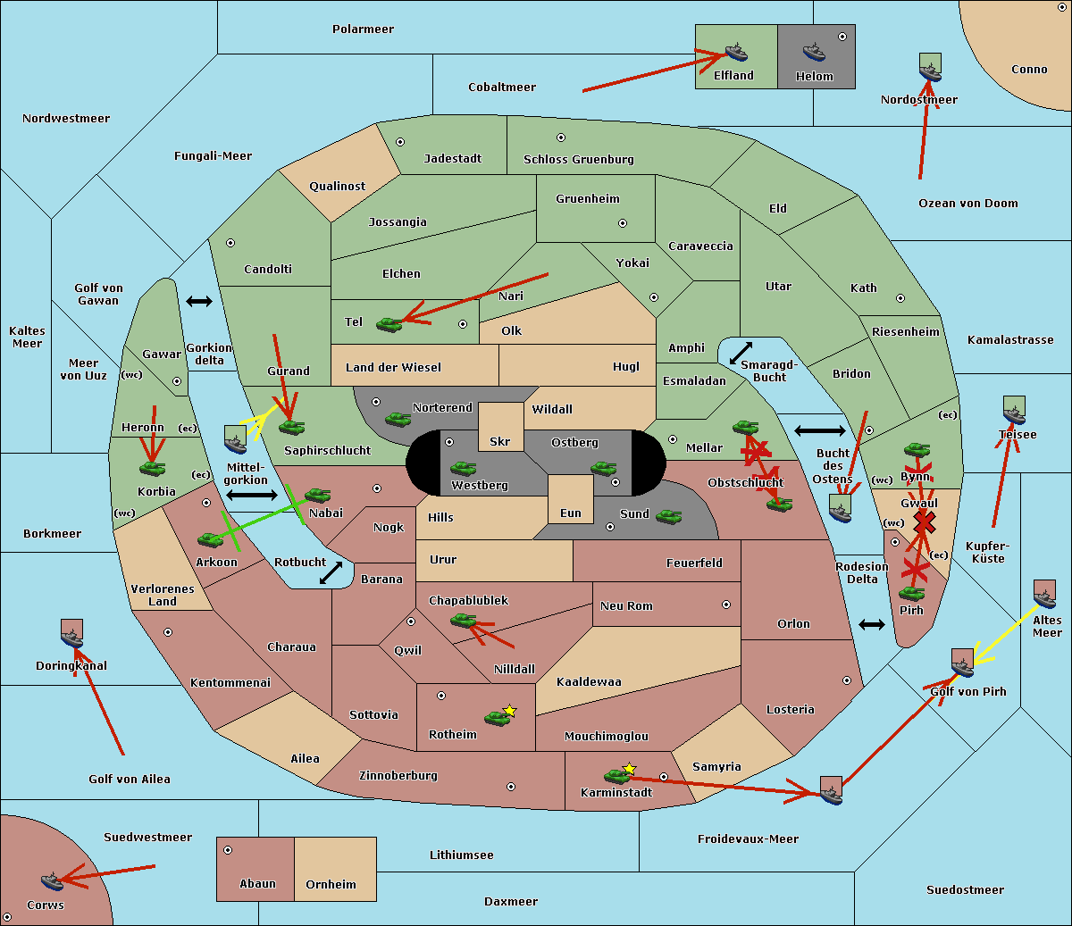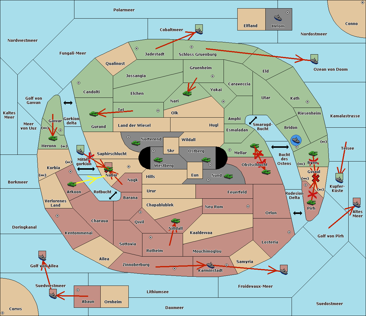 The fleet at Schloss Gruenburg move to Ozean von Doom.