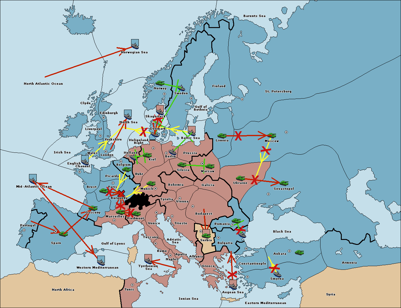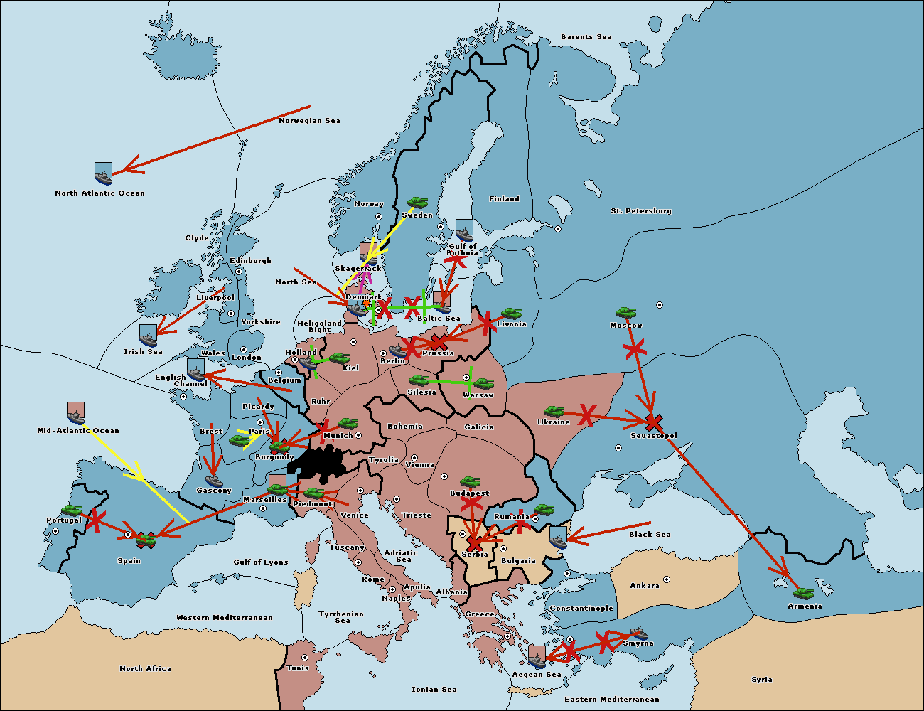The fleet at Bulgaria (North Coast) move to Constantinople.