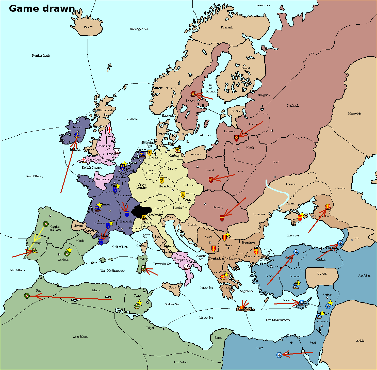 | England (Autumn, 1096) с 4 центров. |
