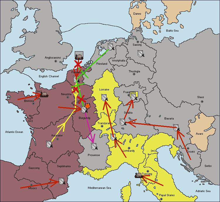 The army at Flanders support move to Burgundy from Neustria.