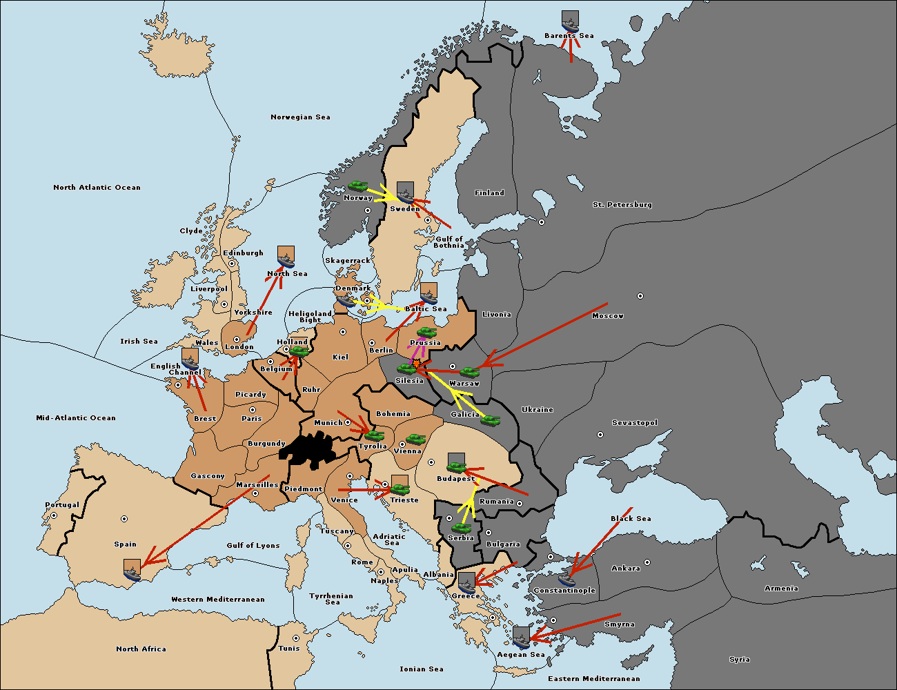 The fleet at Bulgaria (South Coast) move to Greece.