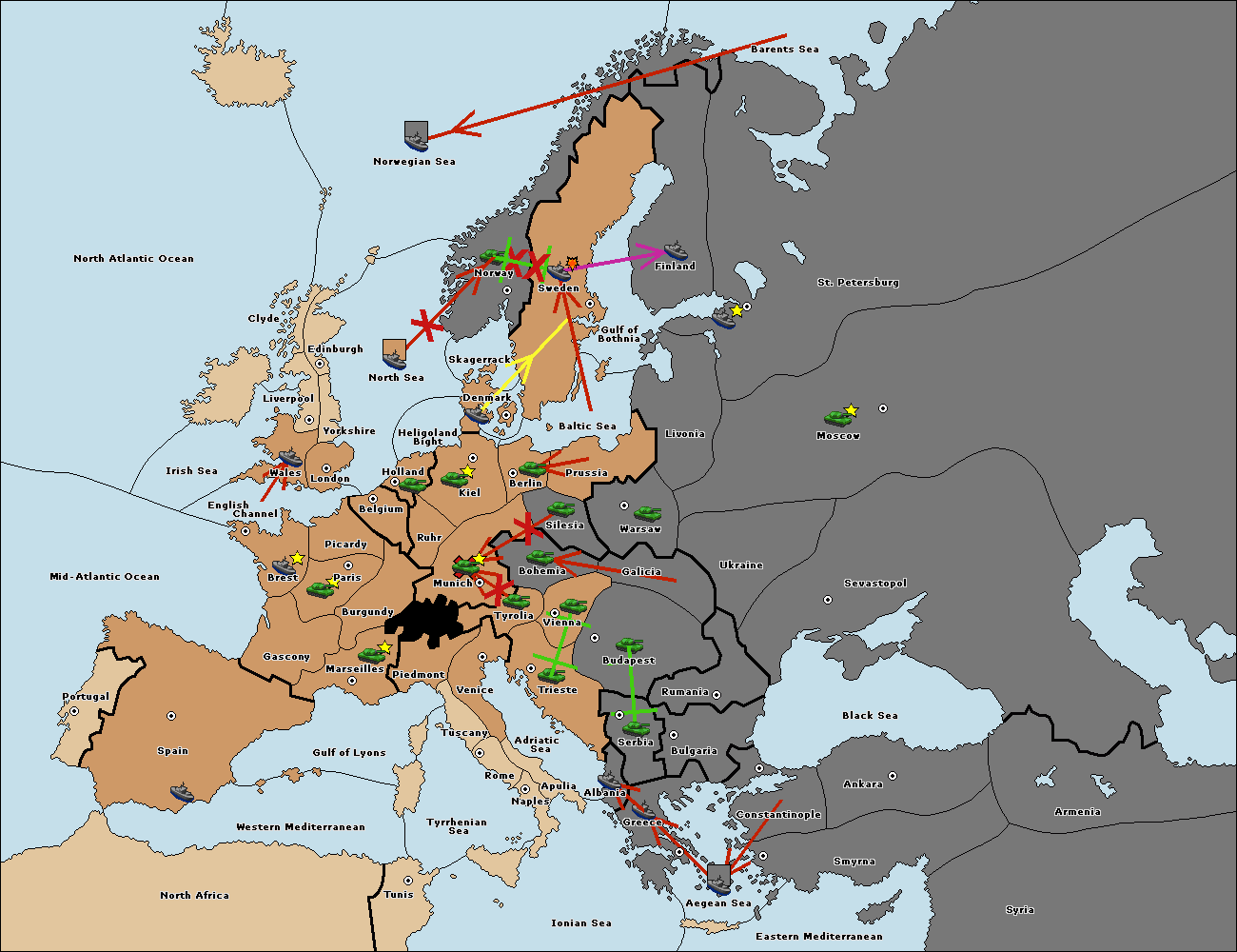 The fleet at Sweden support hold to Norway.