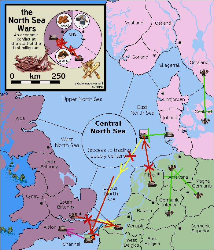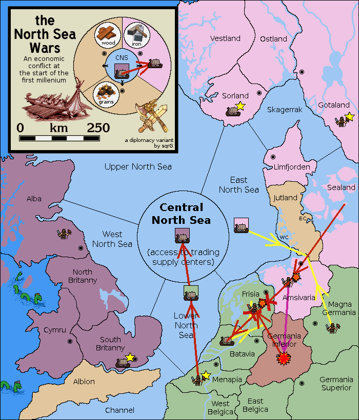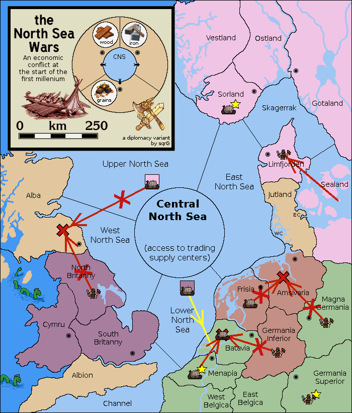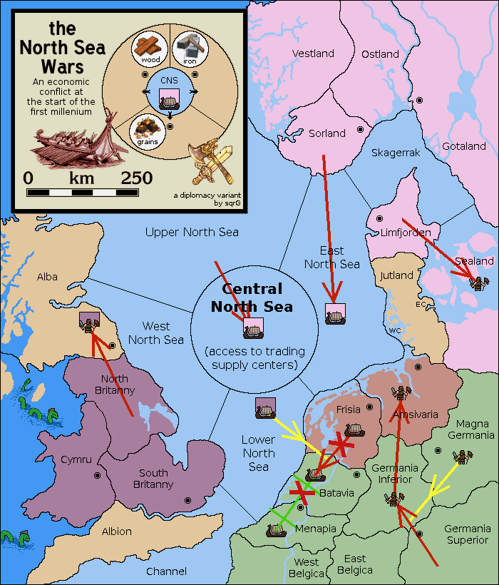 The fleet at Frisia support move to Lower North Sea from Menapia.