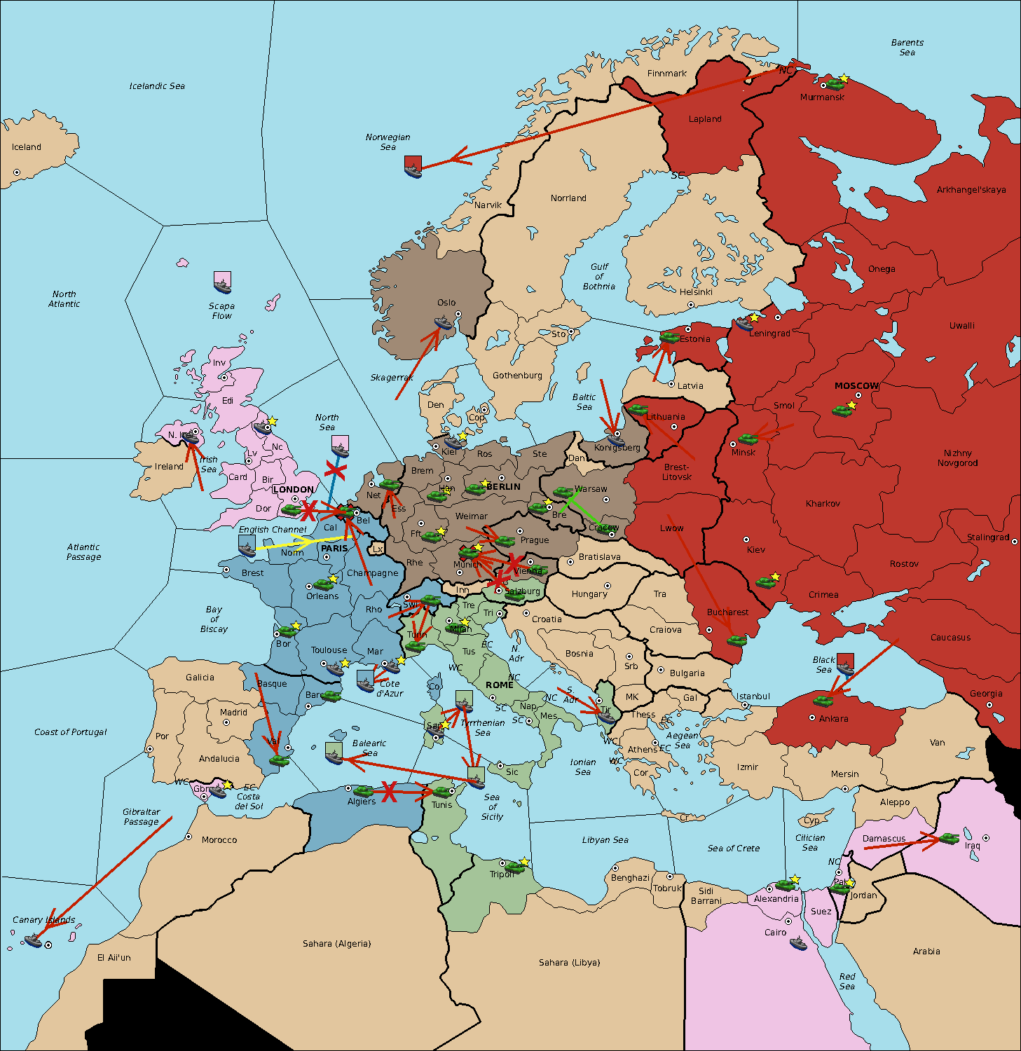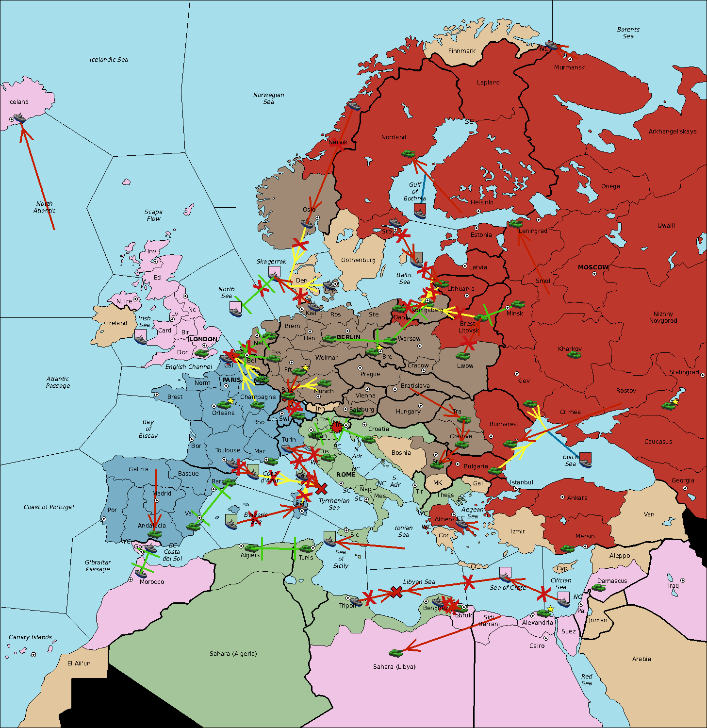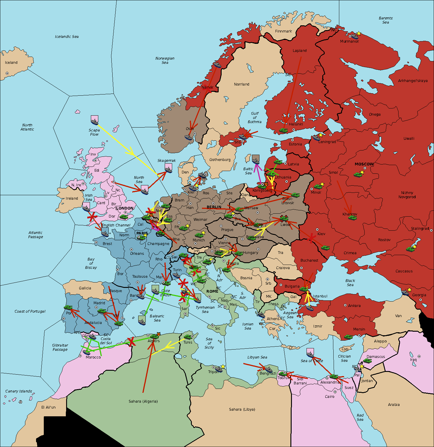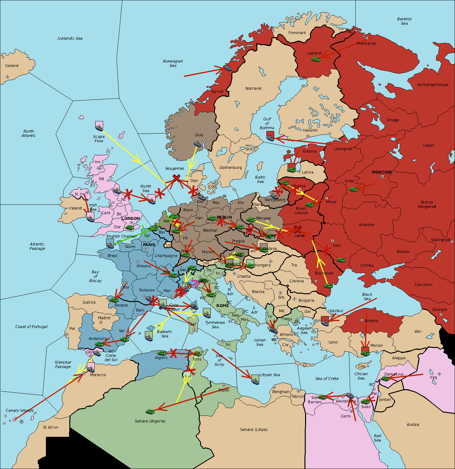 The fleet at Balearic Sea move to Sardinia.