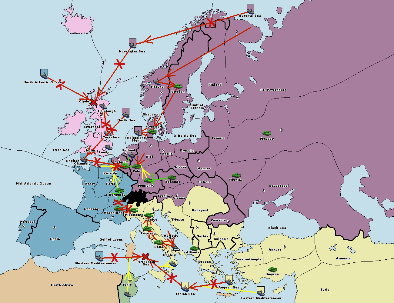 The fleet at Tunis support move to Ionian Sea from Apulia.