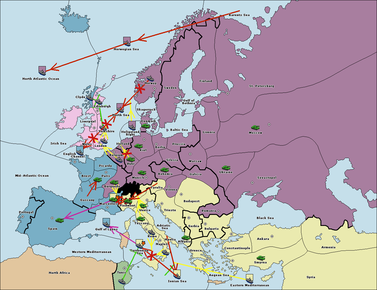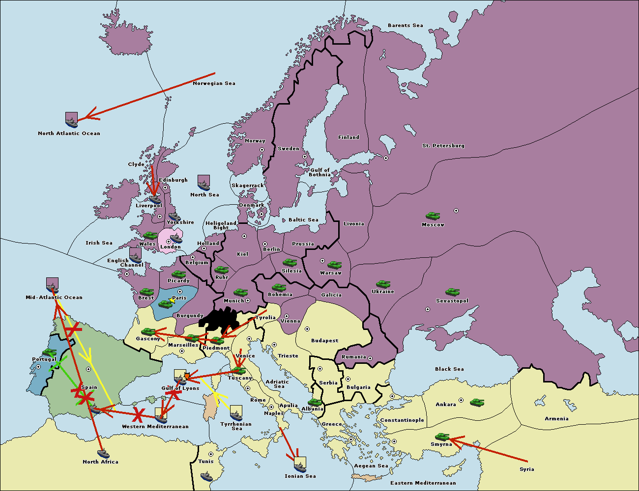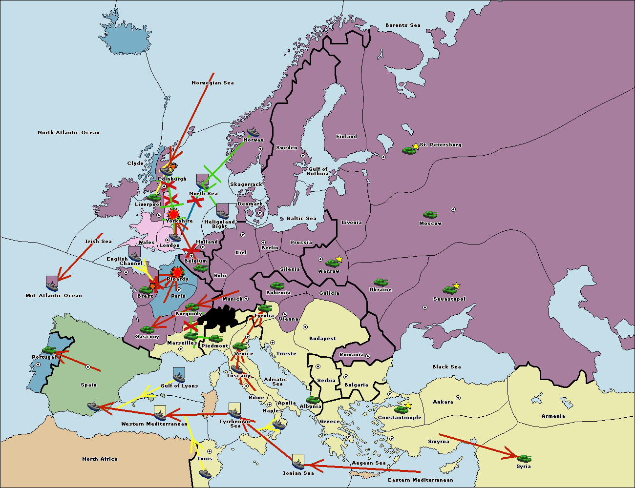 The fleet at St. Petersburg (North Coast) move to Barents Sea.