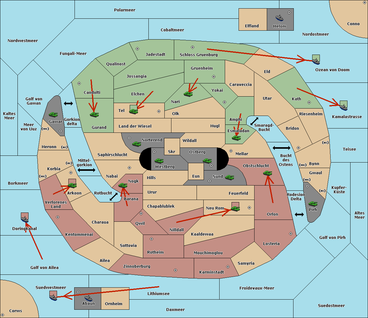 The fleet at Schloss Gruenburg move to Ozean von Doom.