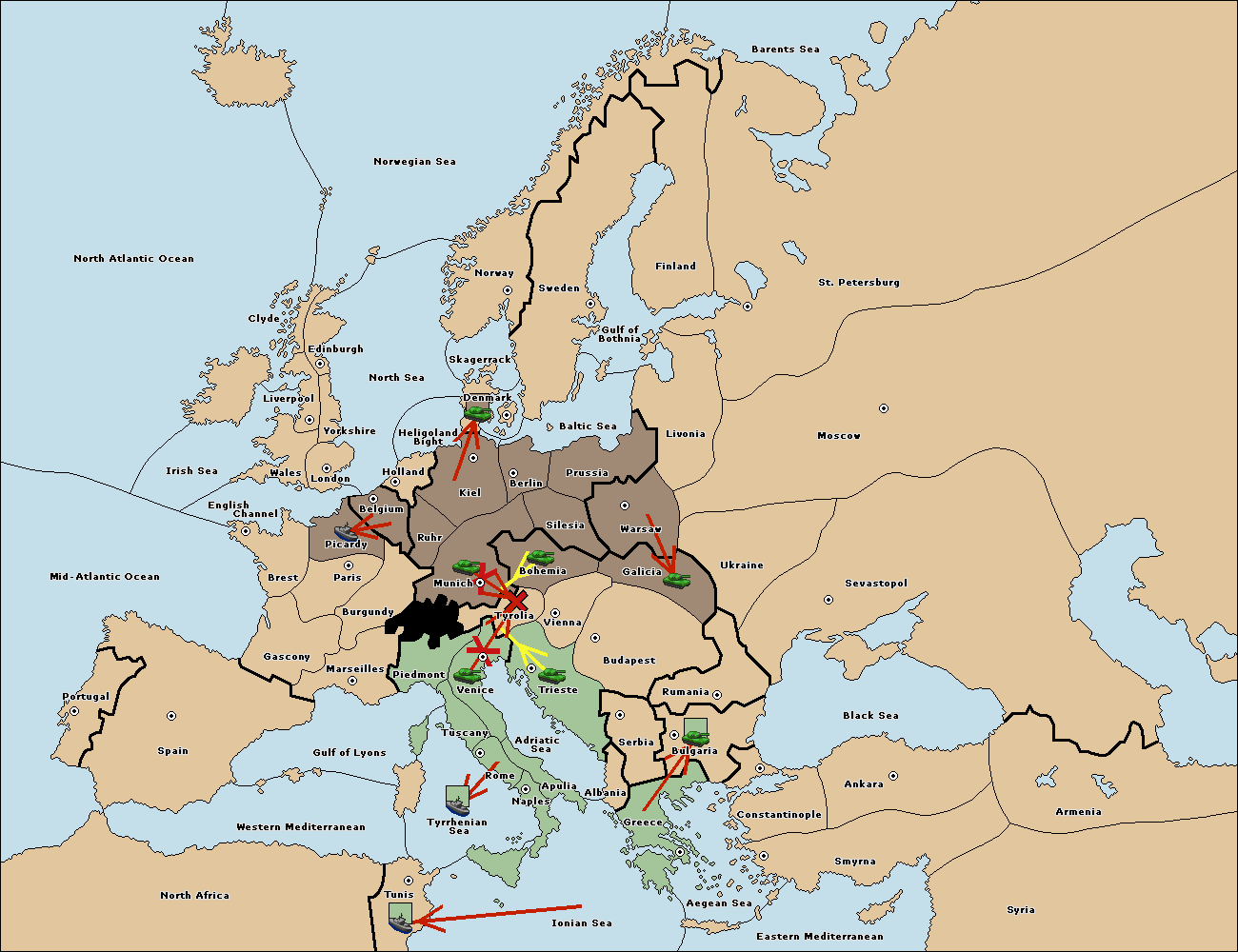 The fleet at Spain (South Coast) support move to Marseilles from Piedmont.