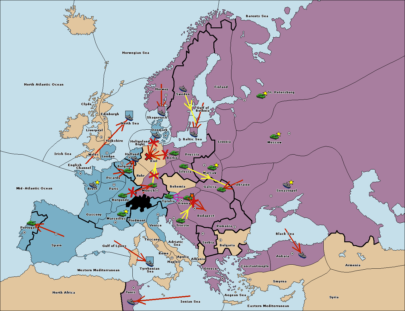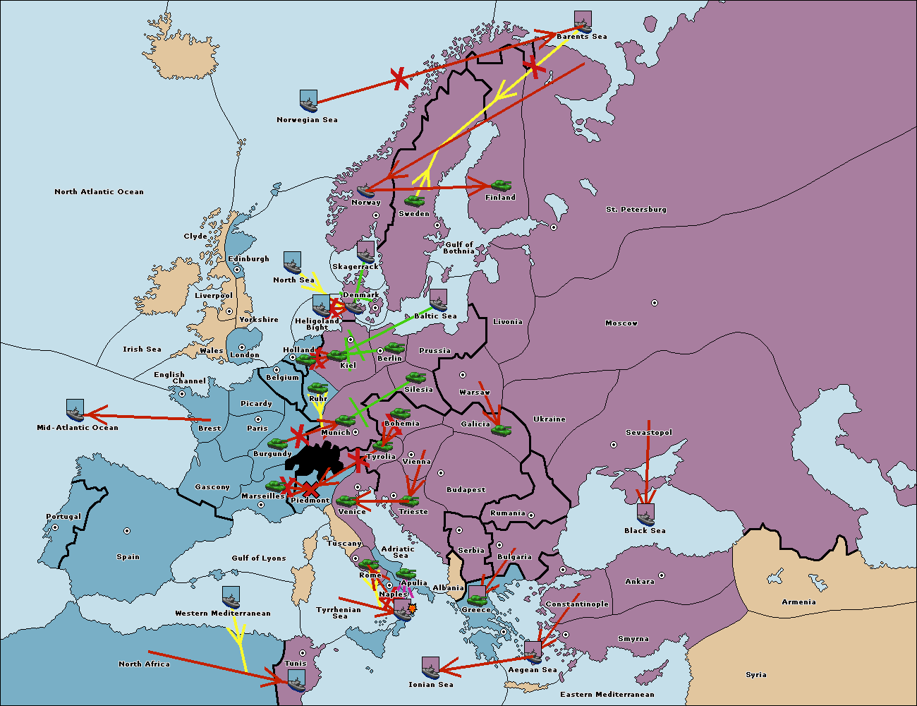 The fleet at Western Mediterranean move to Tyrrhenian Sea.