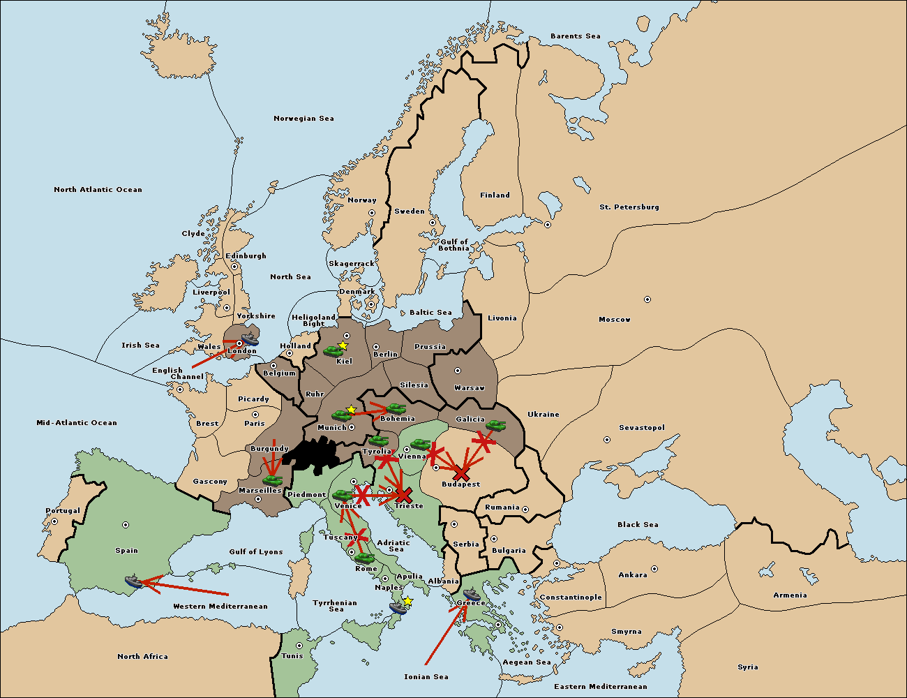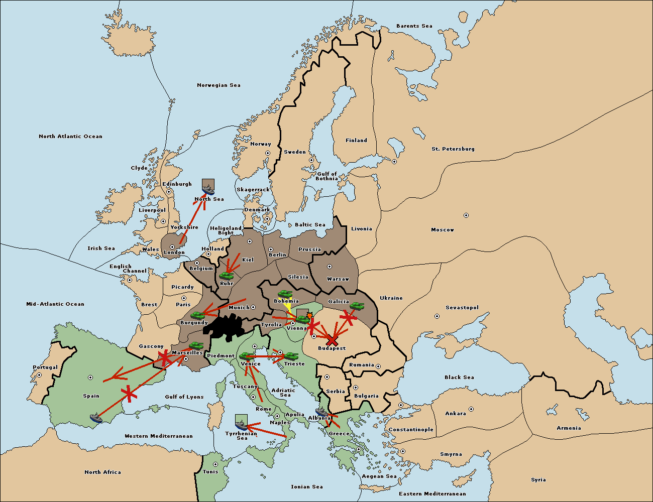 The fleet at Tyrrhenian Sea move to Gulf of Lyons.