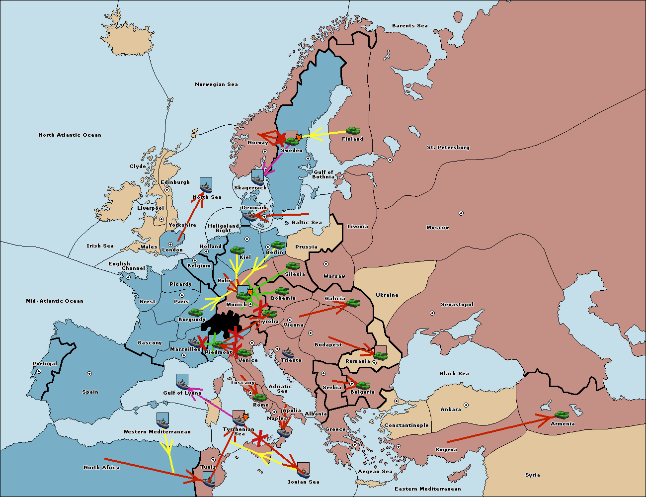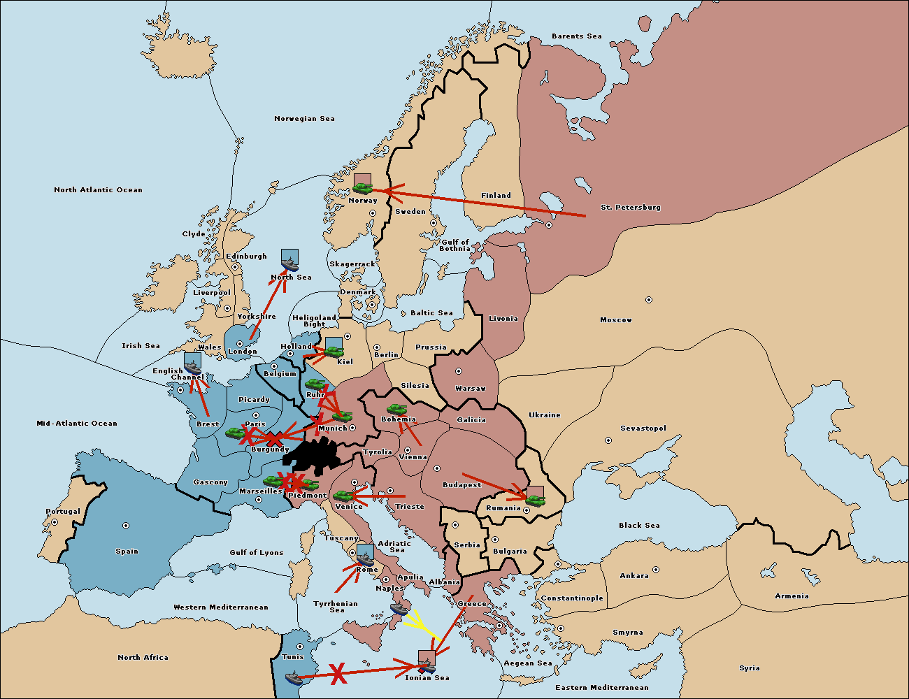 The fleet at Ionian Sea support move to Tunis from Tyrrhenian Sea.