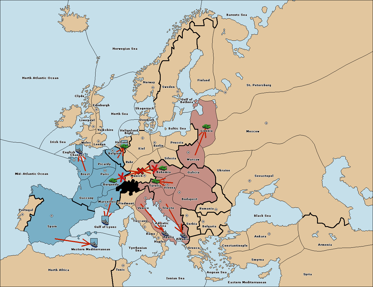 The fleet at Gulf of Lyons support hold to Tyrrhenian Sea.