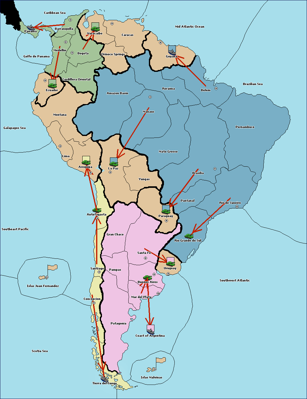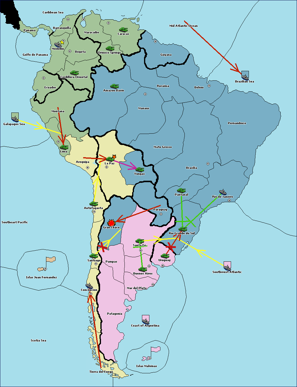 The army at Amazon Basin move to La Paz.