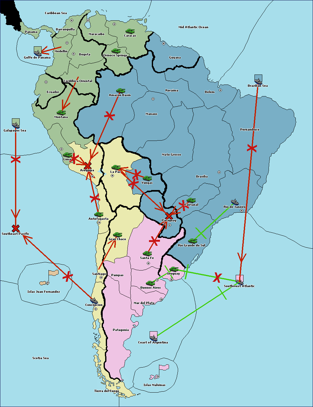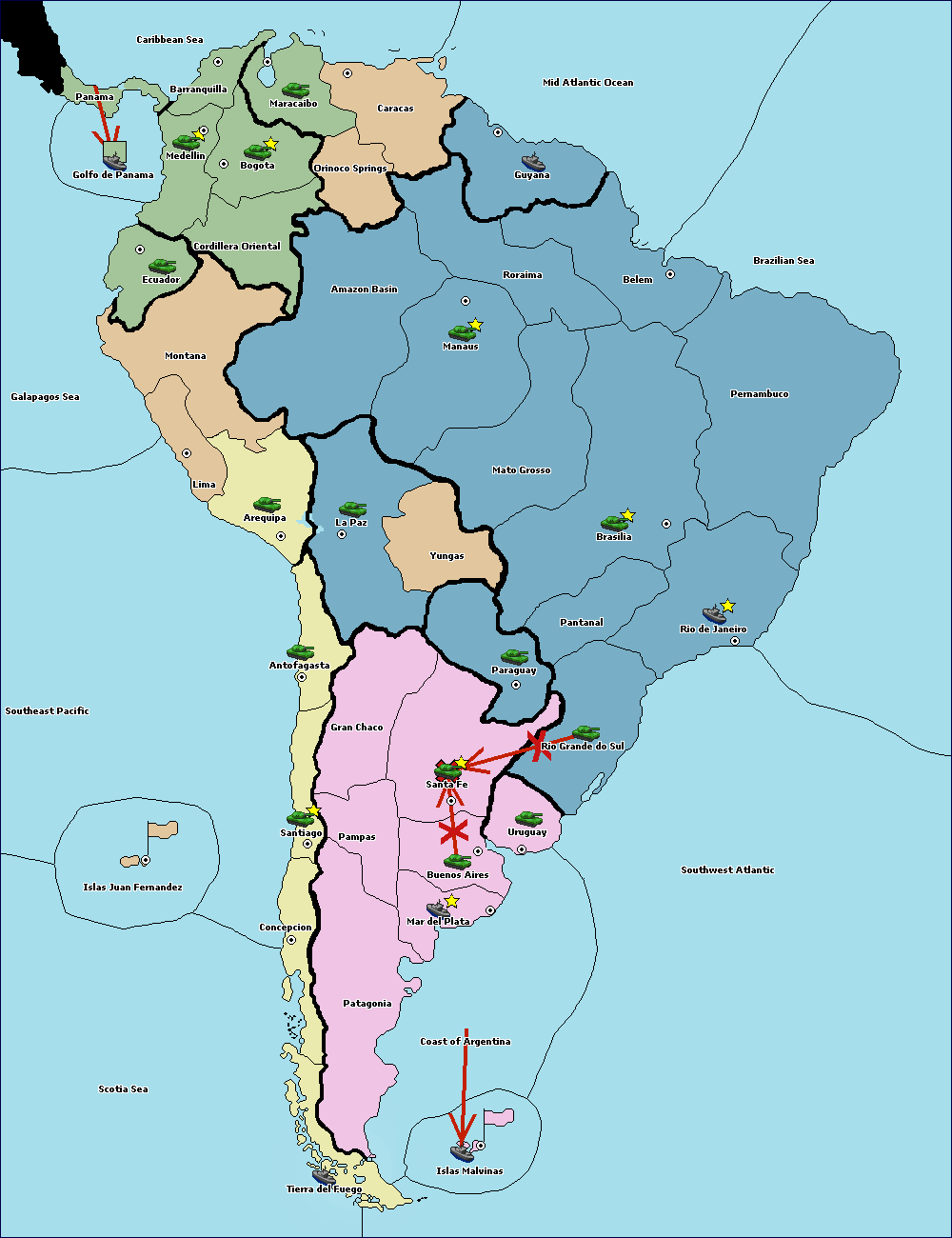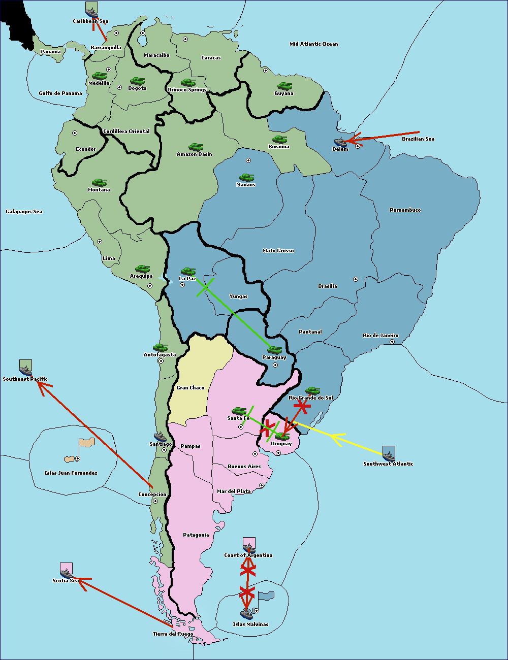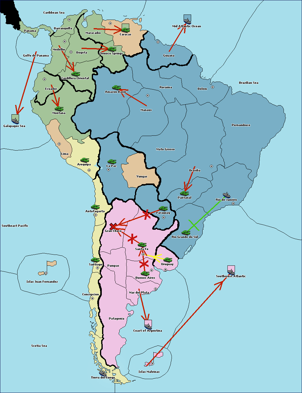 The fleet at Mid Atlantic Ocean move to Brazilian Sea.