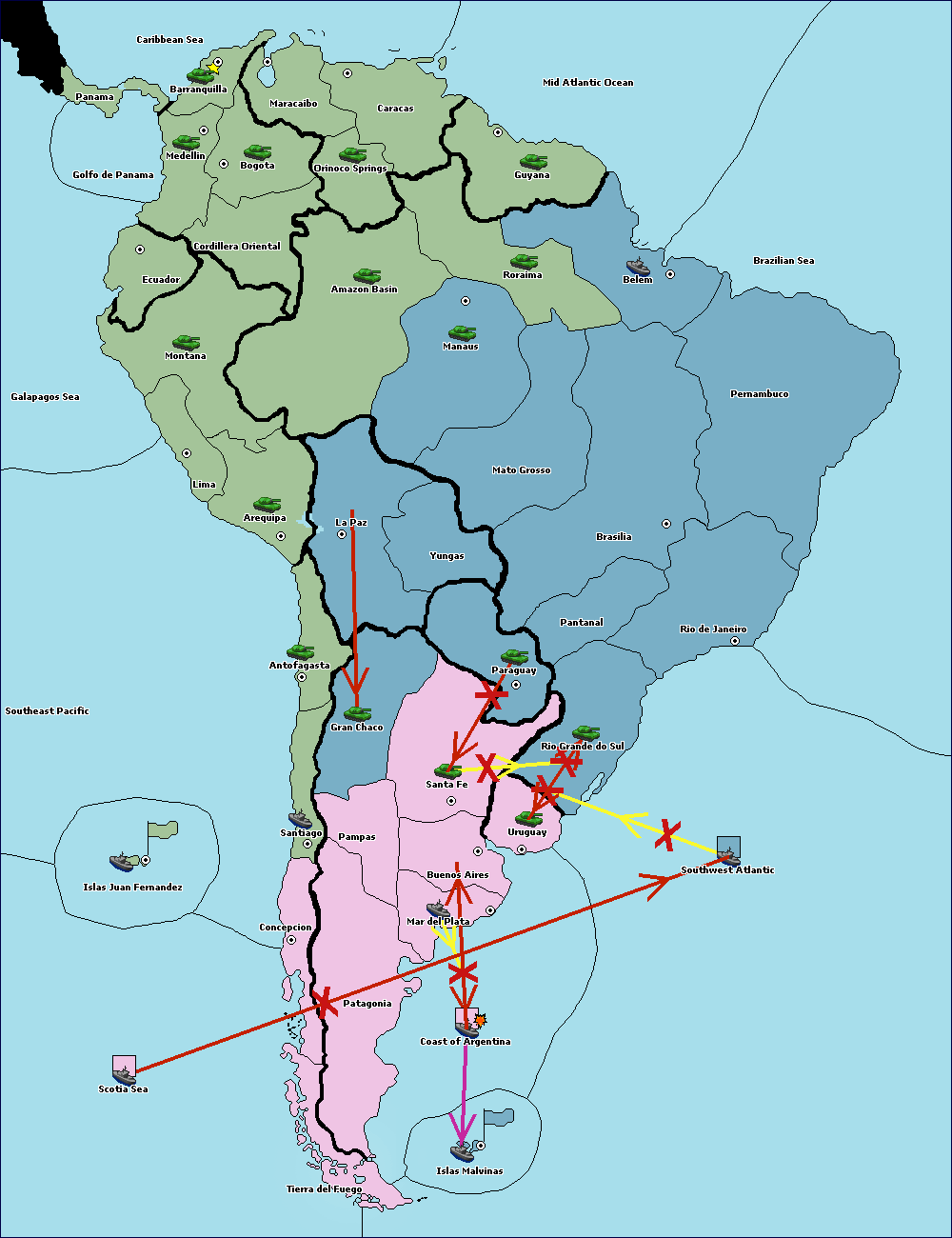 The fleet at Southwest Atlantic move to Islas Malvinas.