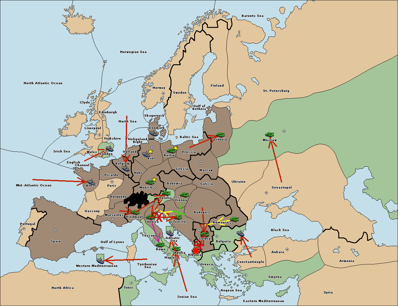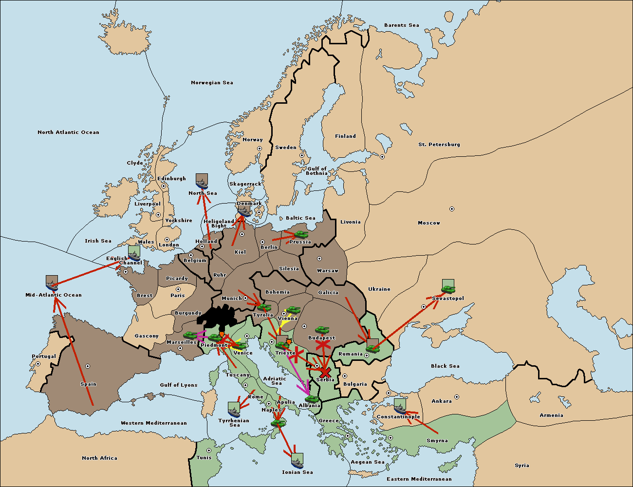 The fleet at Bulgaria (North Coast) move to Constantinople.