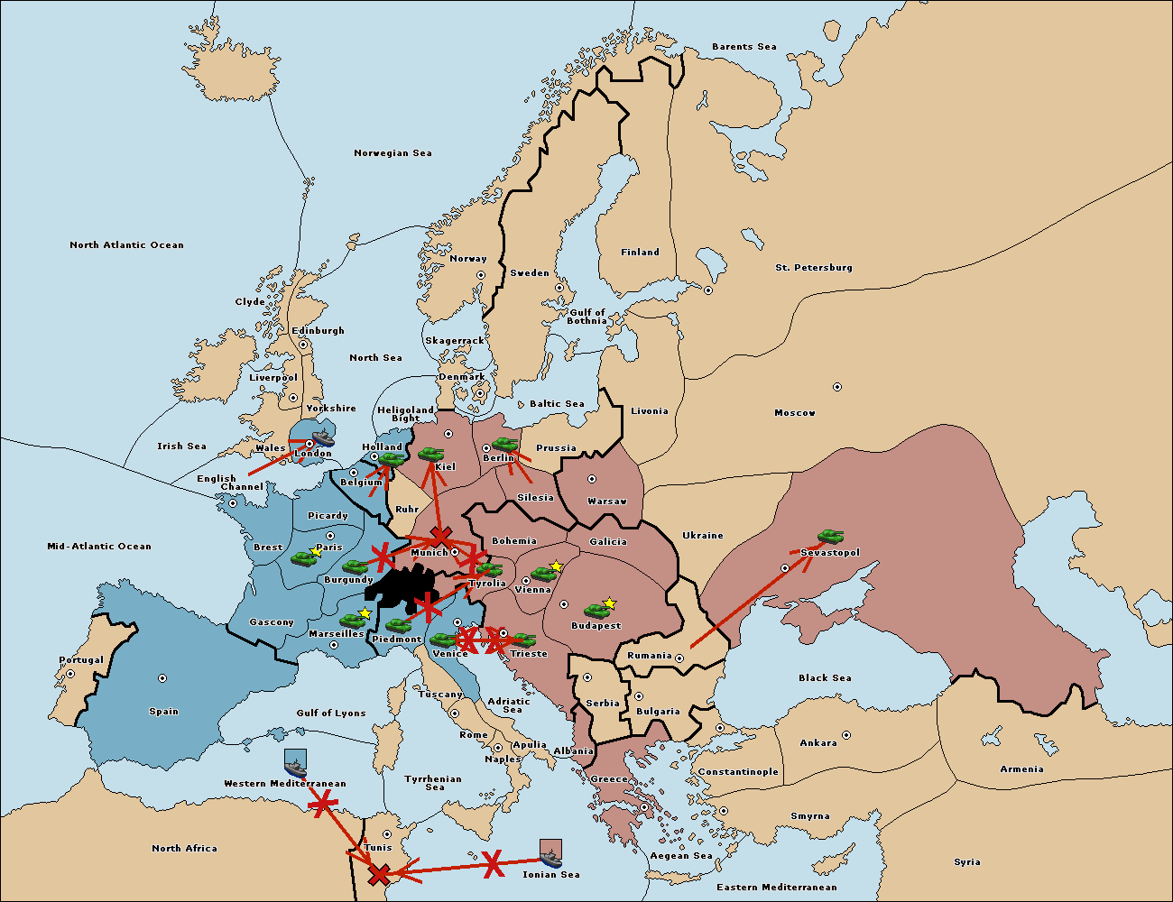 The fleet at Spain (South Coast) move to Western Mediterranean.