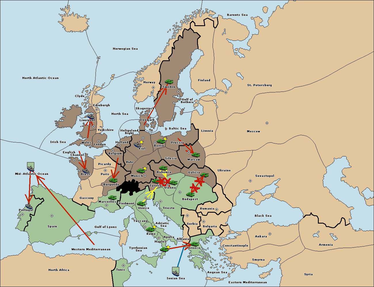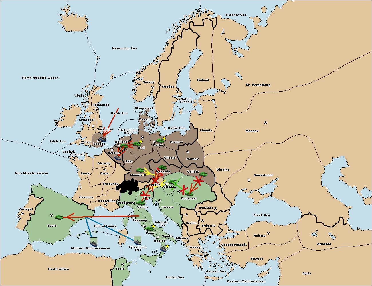 The army at Tyrolia move to Vienna.