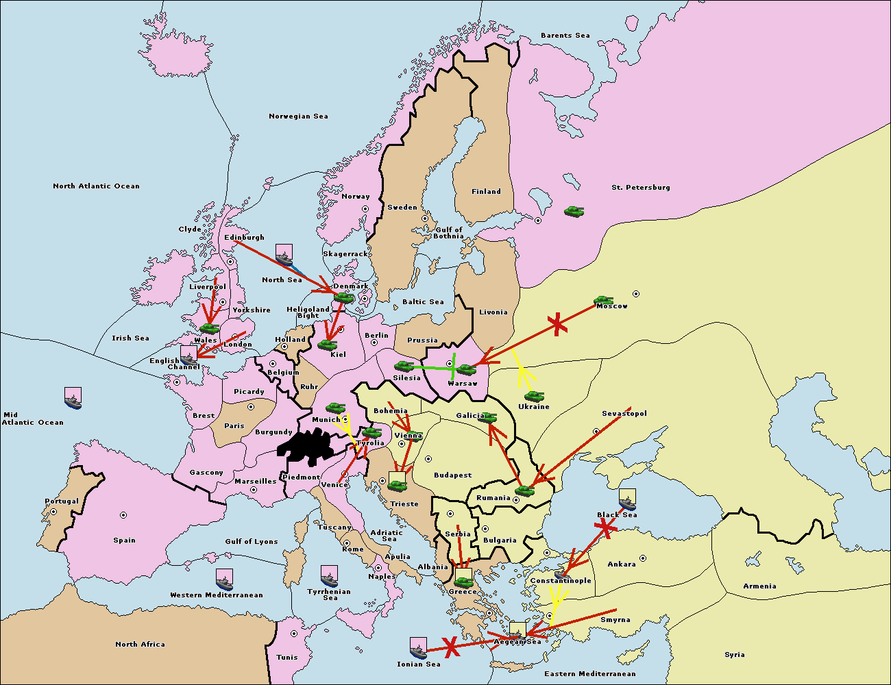 The fleet at Mid-Atlantic Ocean move to Western Mediterranean.