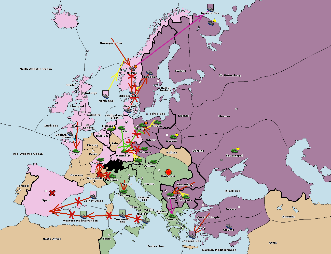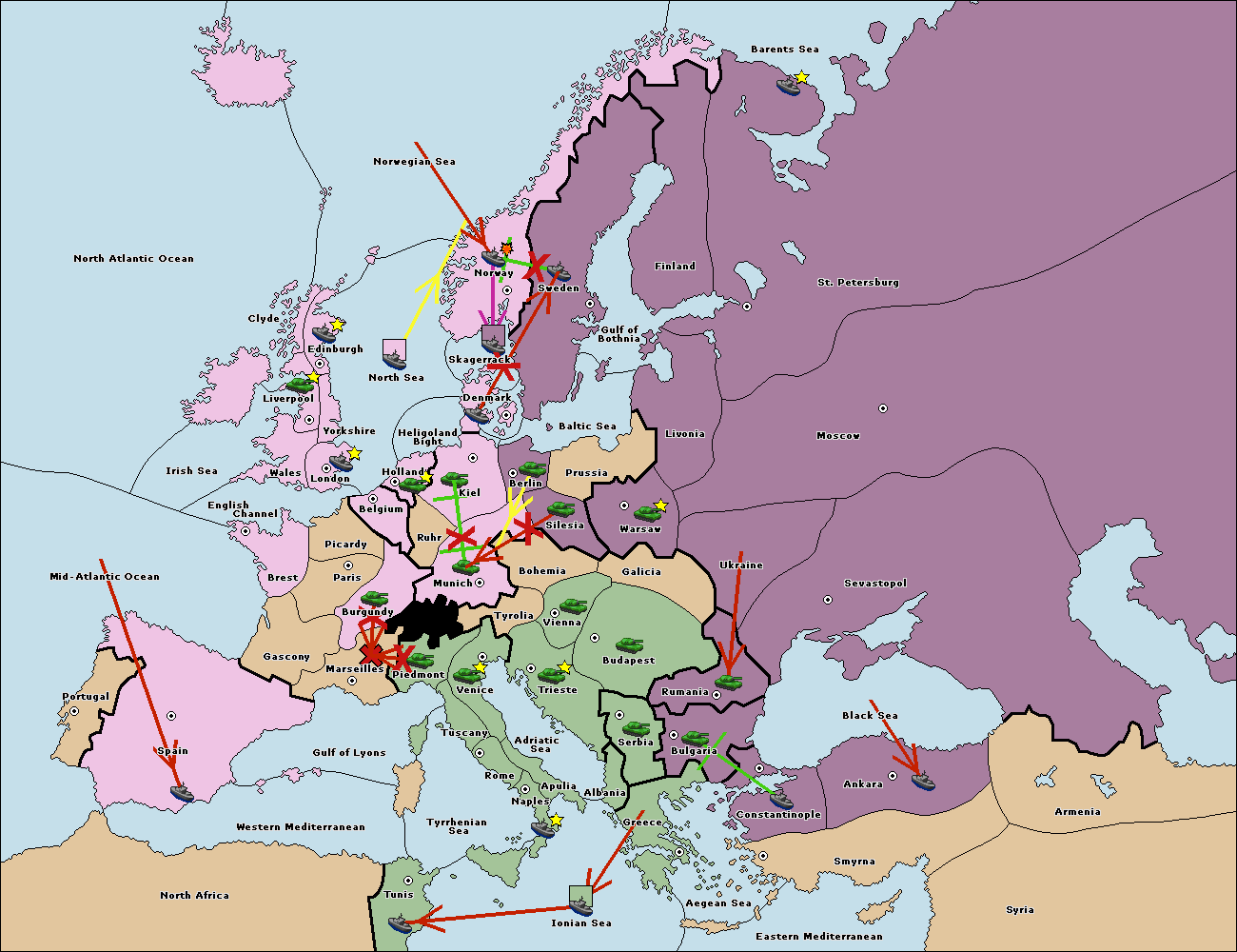 The fleet at Mid-Atlantic Ocean move to Western Mediterranean.