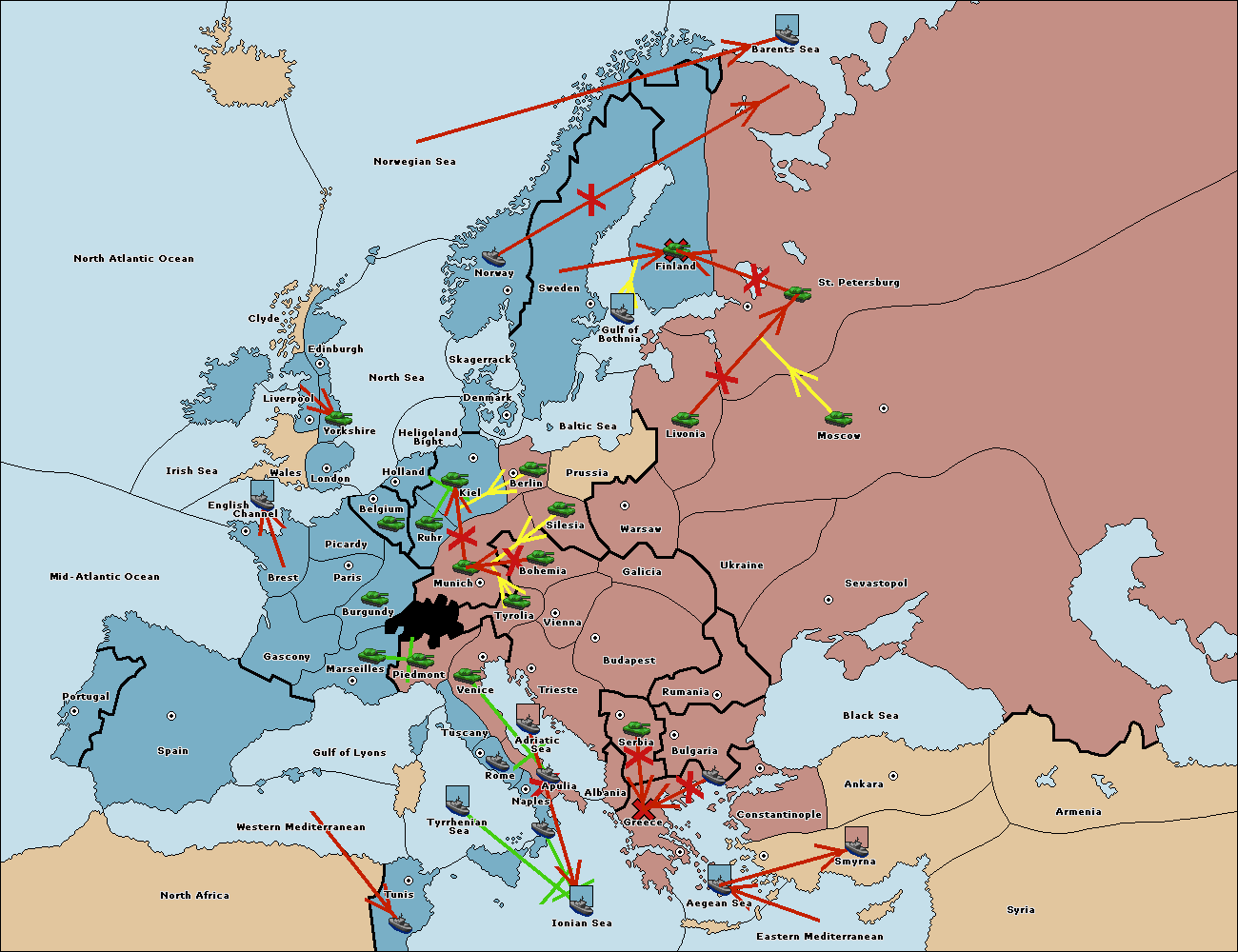 The fleet at Bulgaria (South Coast) move to Constantinople.