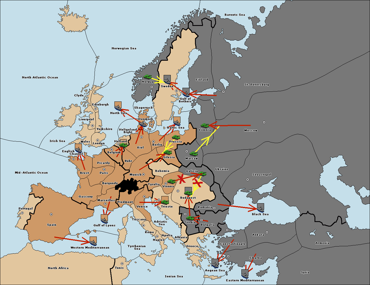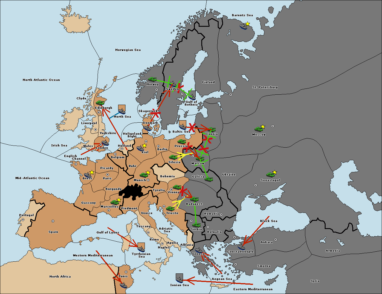 The fleet at Tyrrhenian Sea support move to Naples from Ionian Sea.