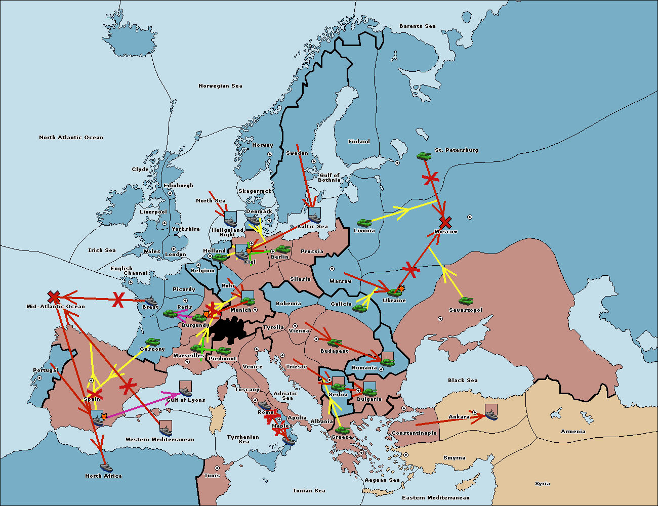 The fleet at Bulgaria (South Coast) move to Constantinople.