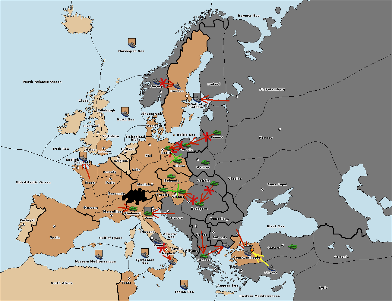 The fleet at Bulgaria (North Coast) move to Constantinople.