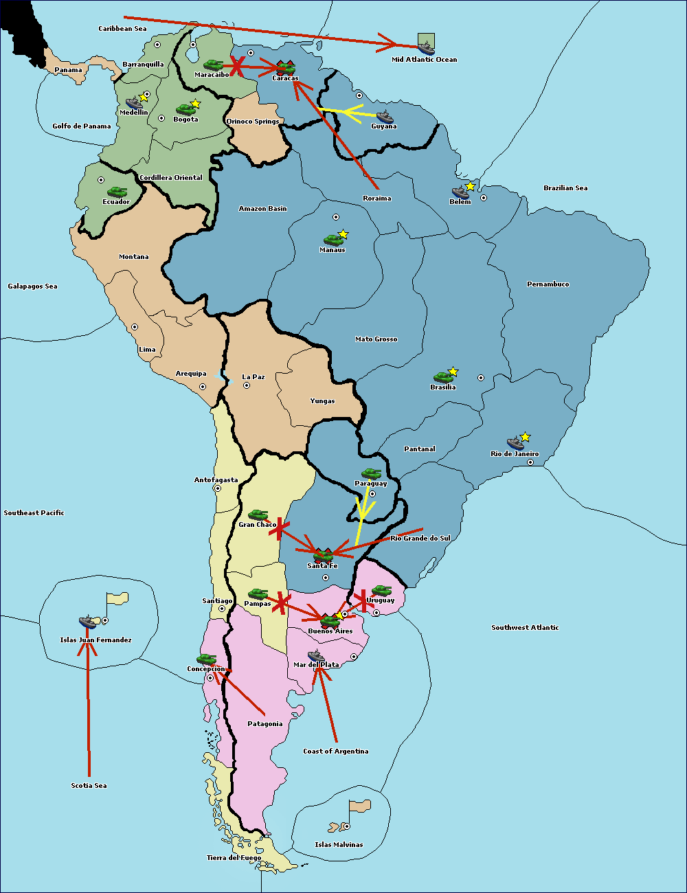 The army at Orinoco Springs move to Amazon Basin.