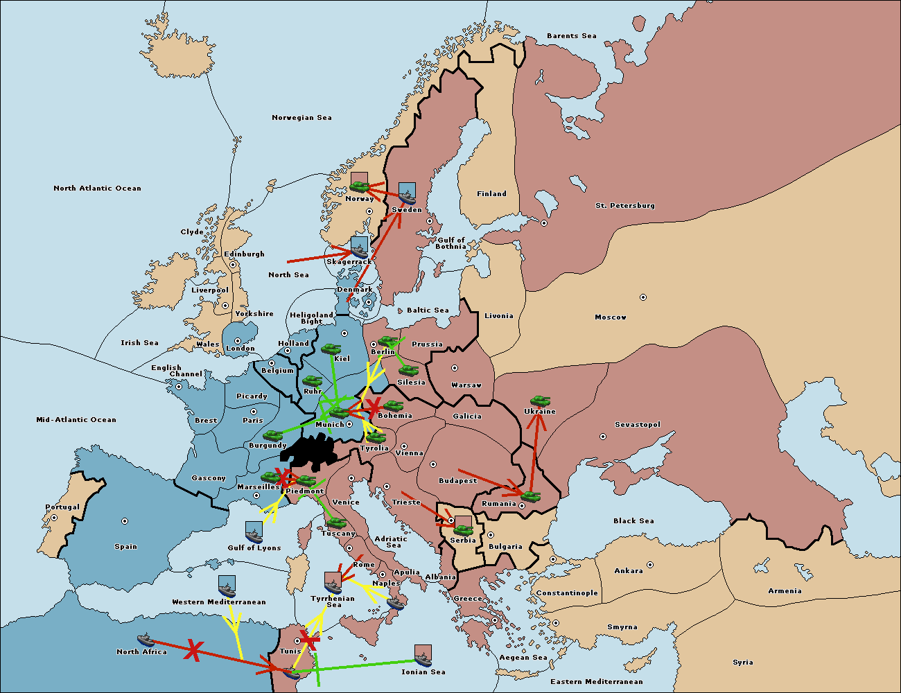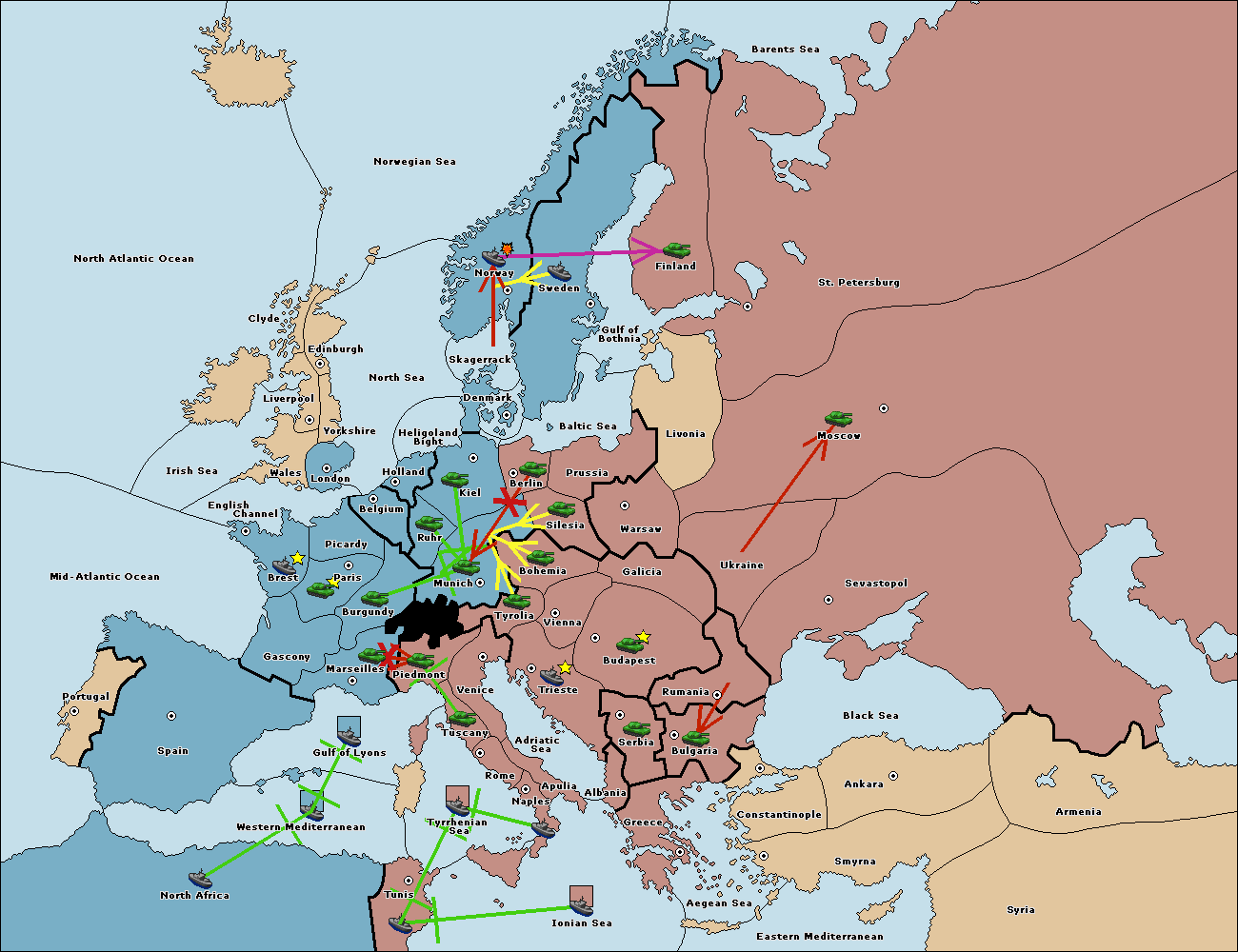 The fleet at Mid-Atlantic Ocean move to Western Mediterranean.