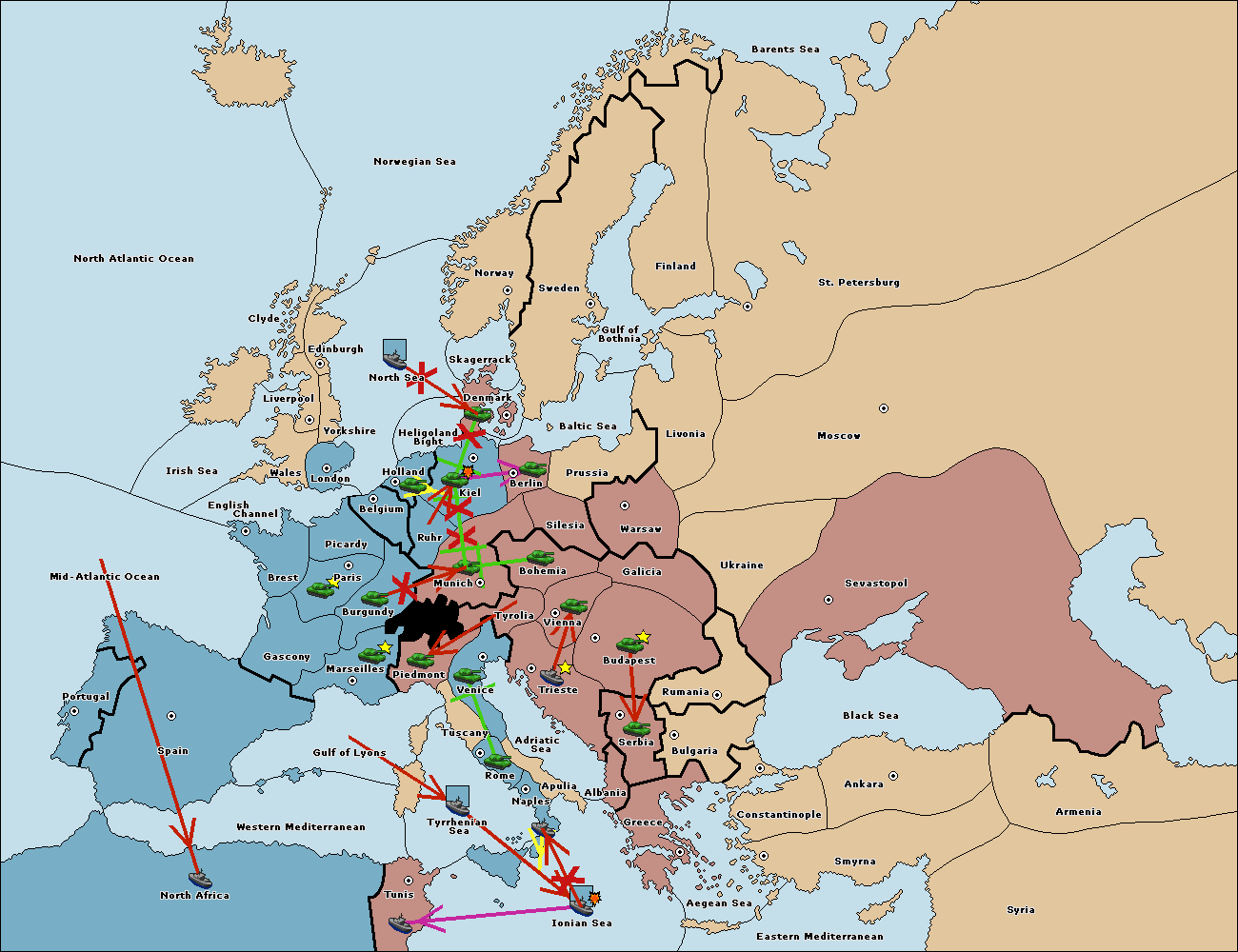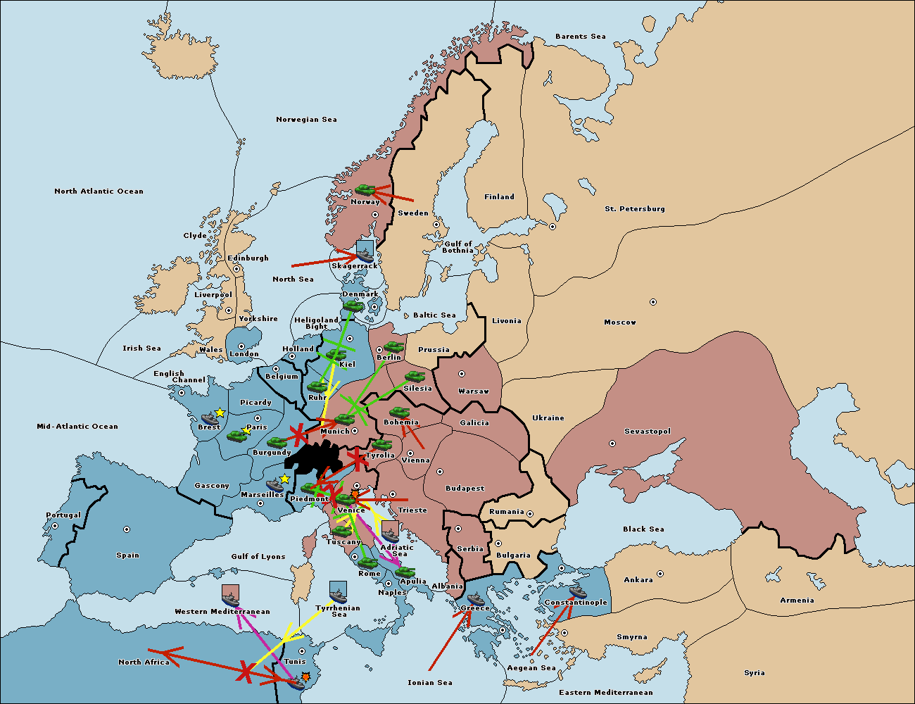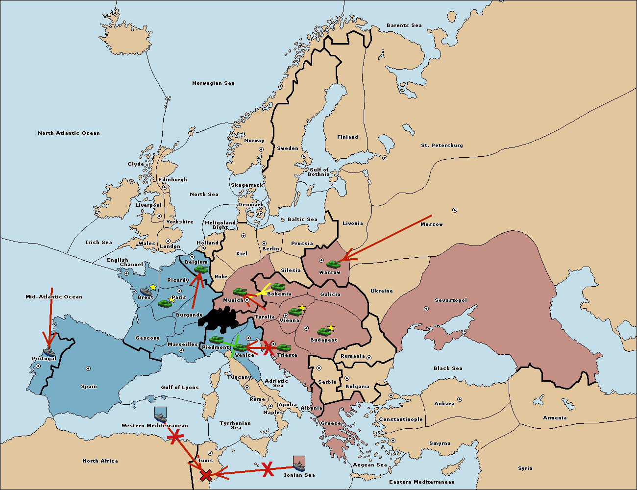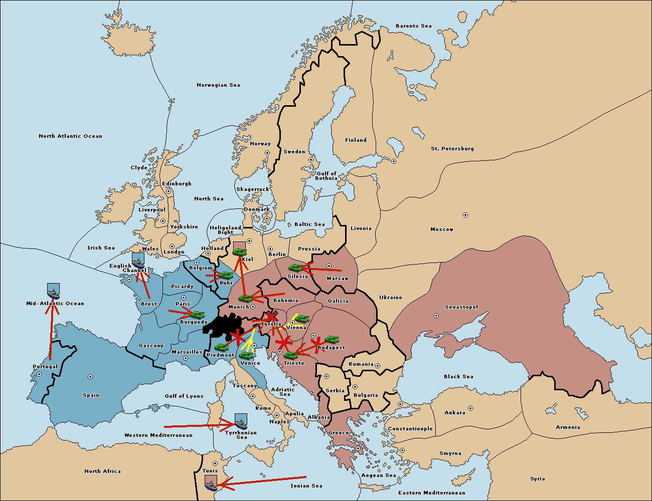 The fleet at Spain (South Coast) support hold to Marseilles.