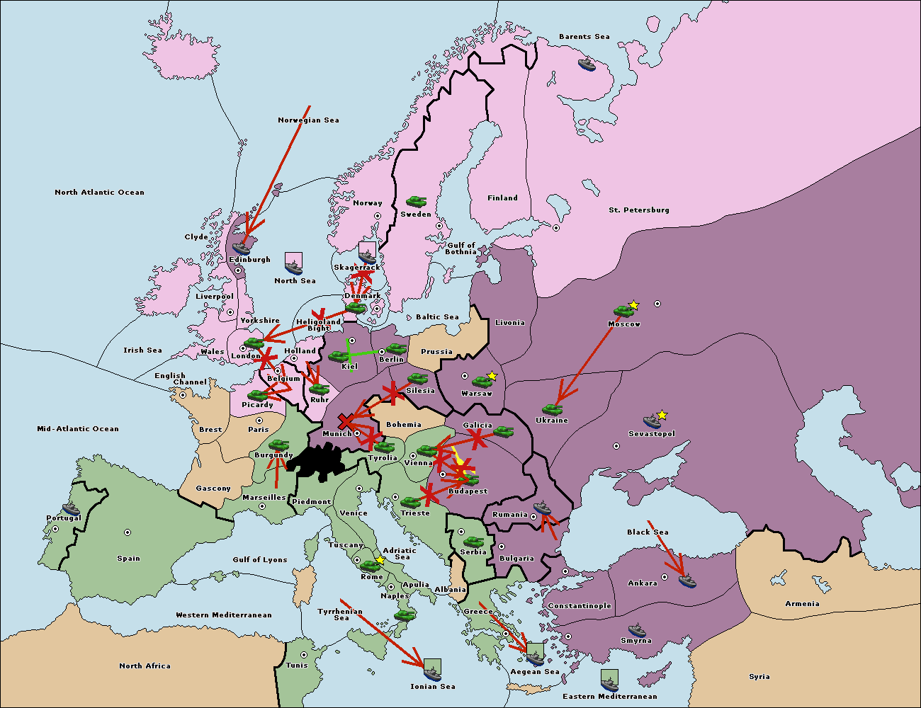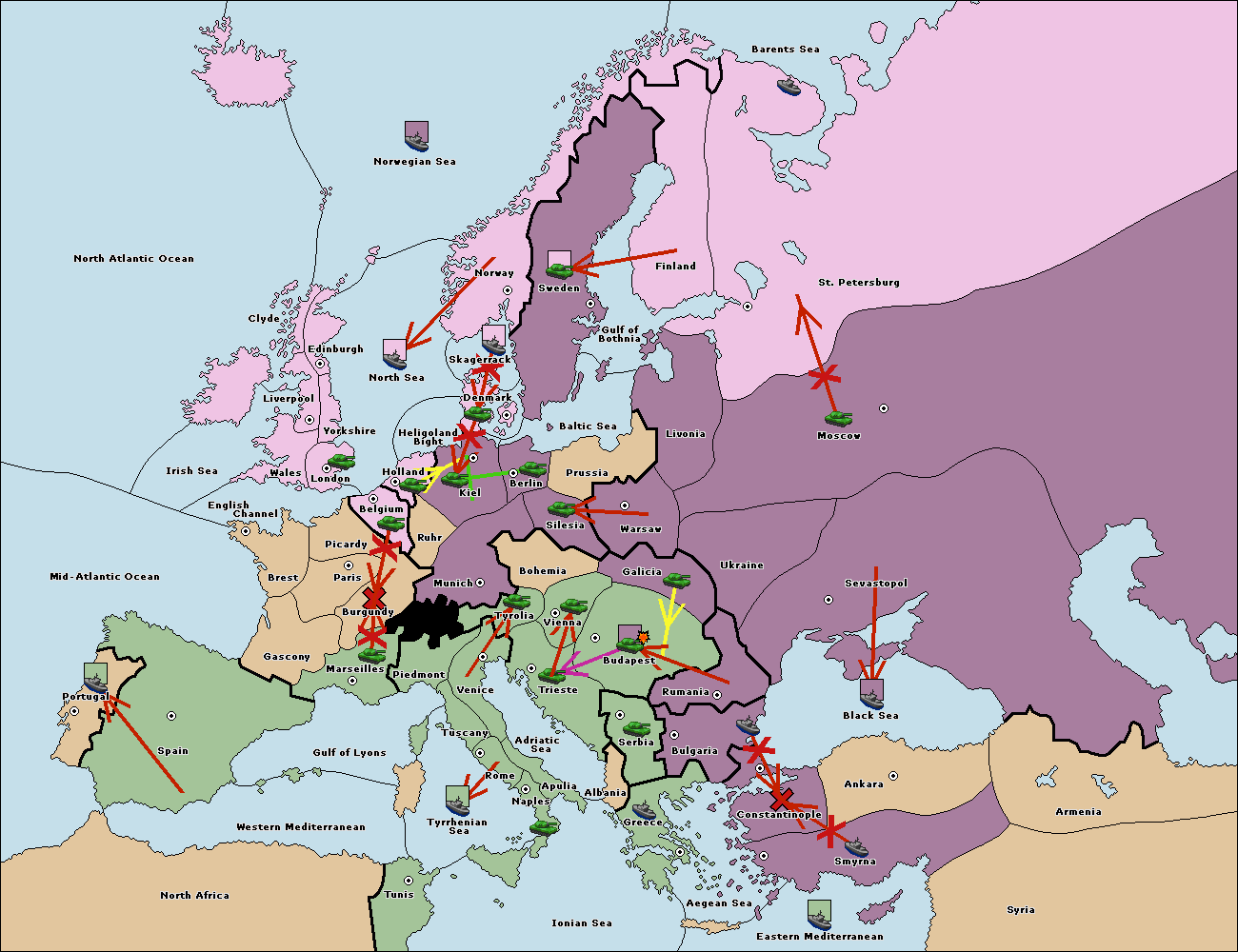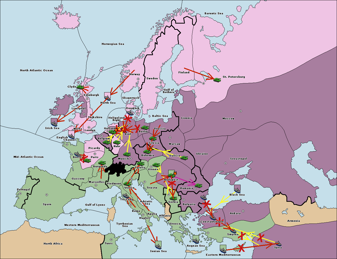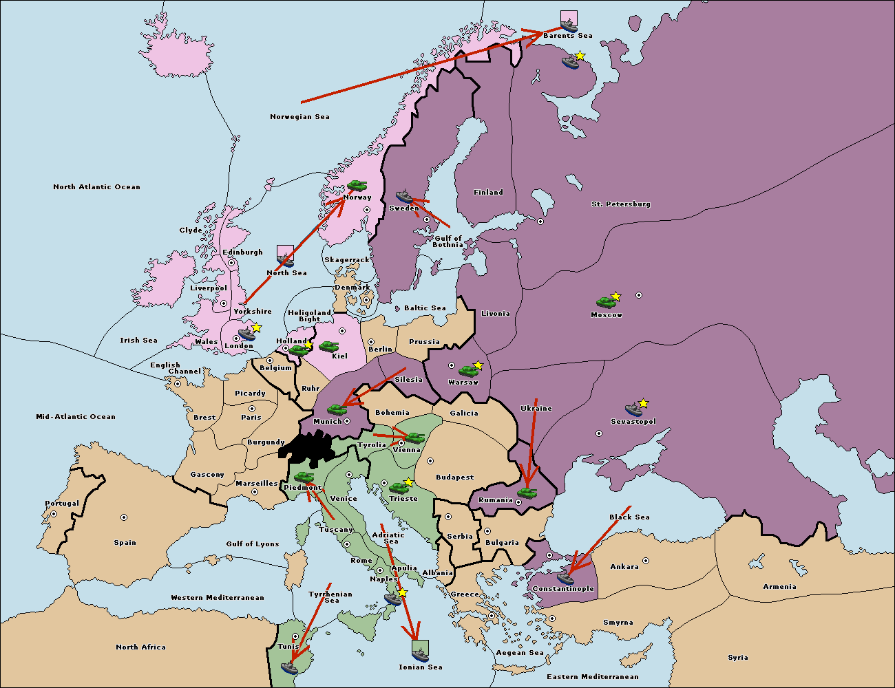 The fleet at Bulgaria (North Coast) move to Constantinople.