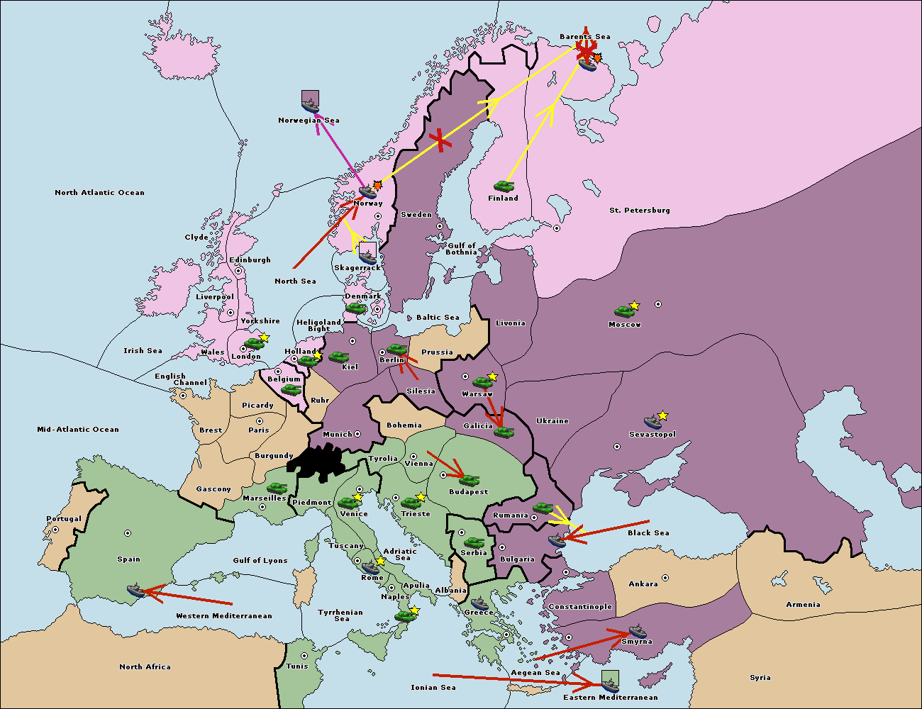 The fleet at St. Petersburg (North Coast) move to Barents Sea.