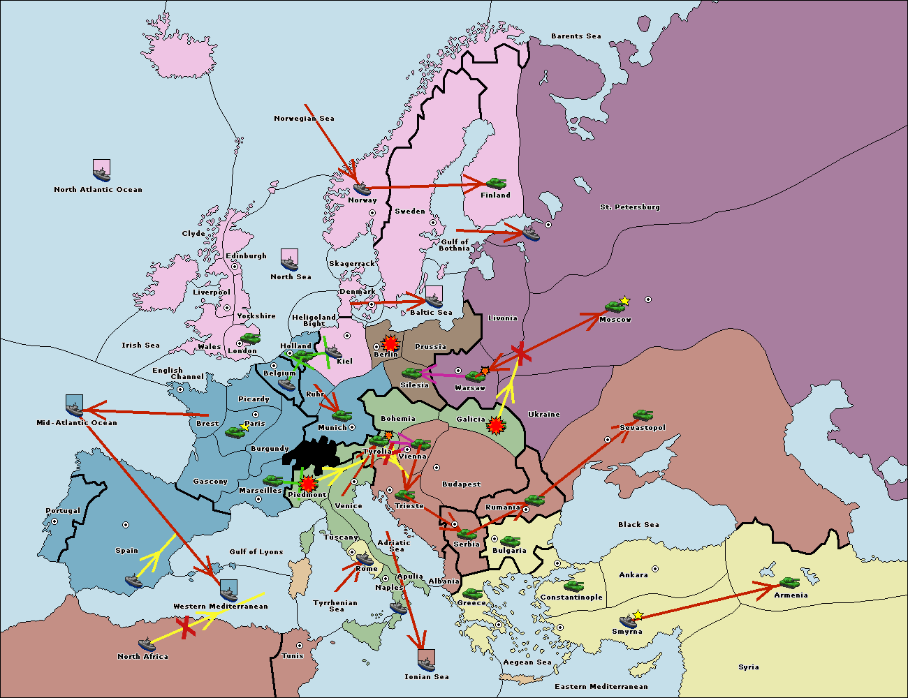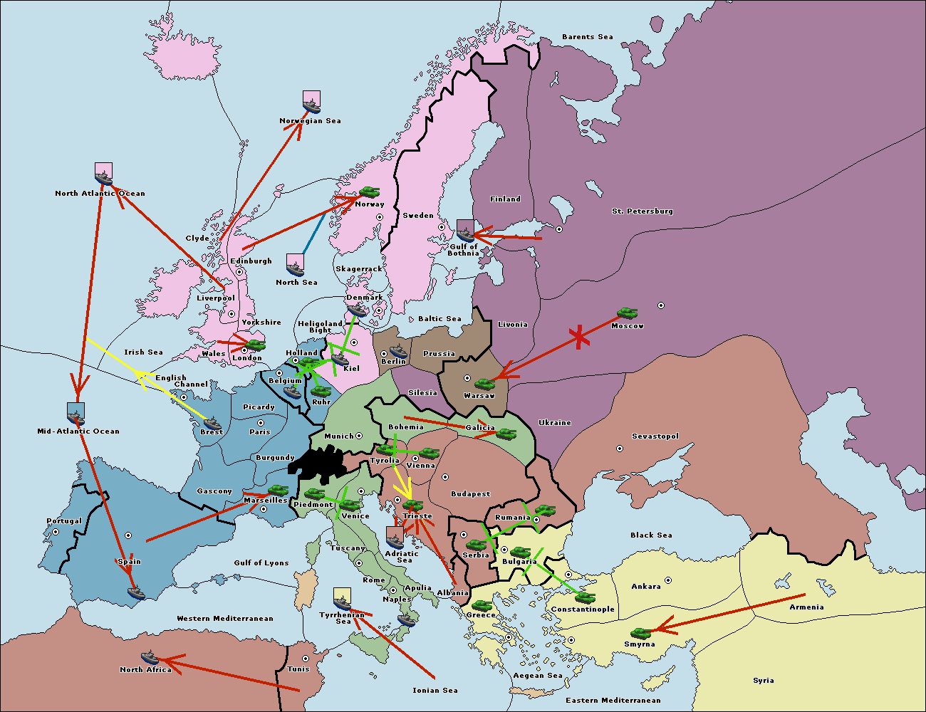 The fleet at Bulgaria (South Coast) move to Aegean Sea.
