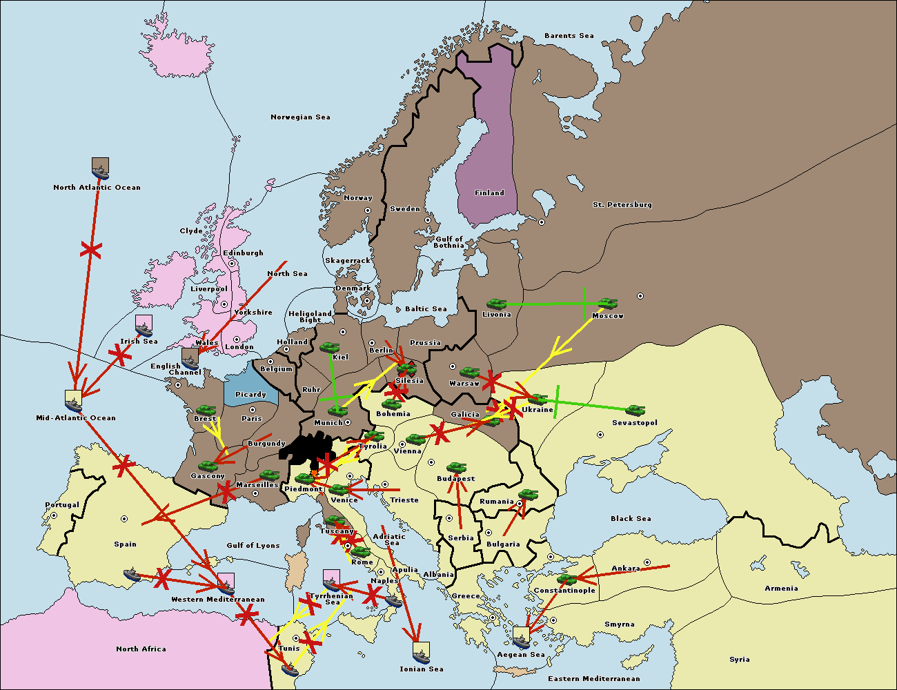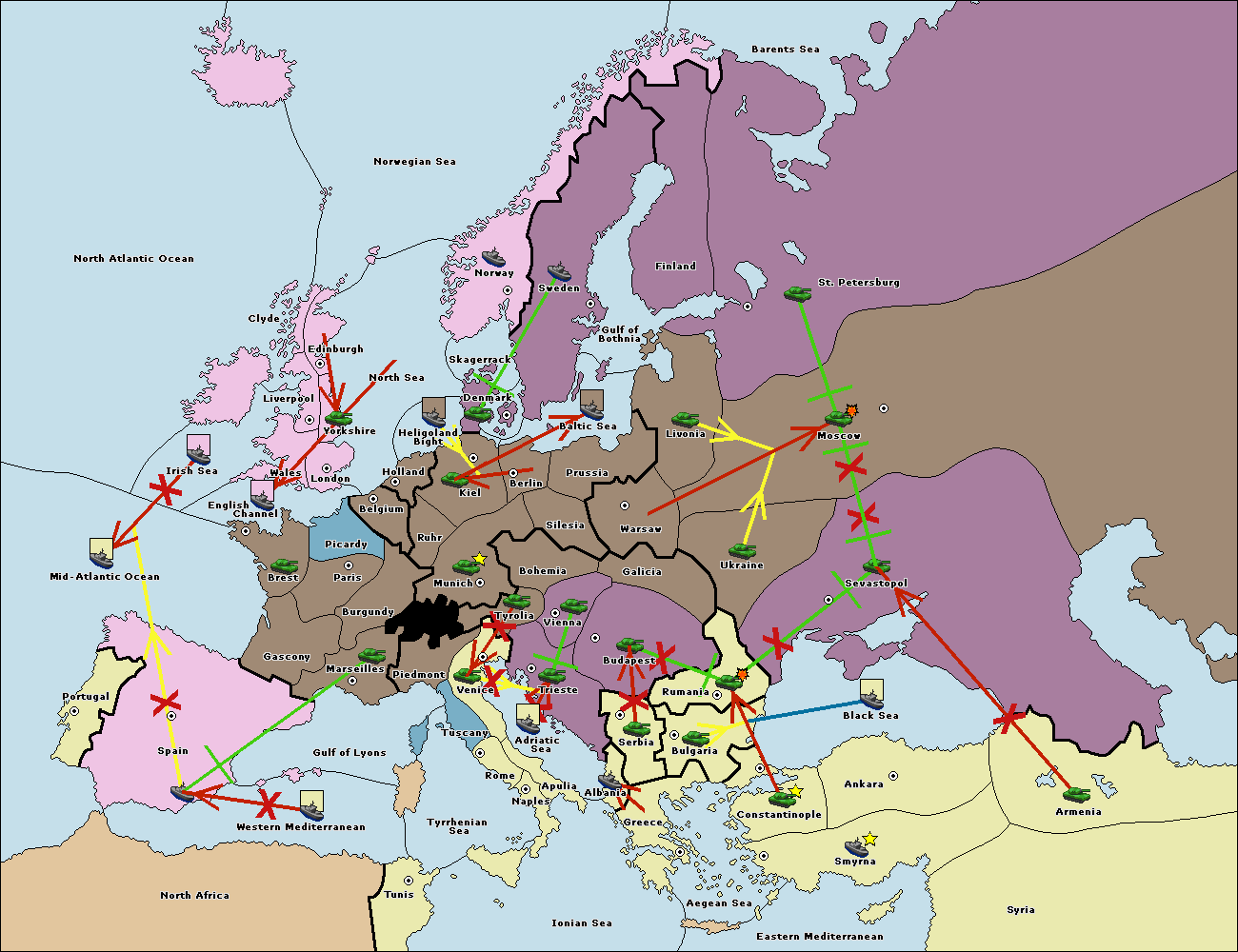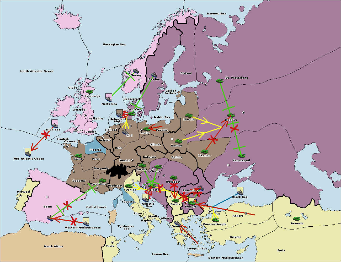 The fleet at Bulgaria (North Coast) support move to Black Sea from Constantinople.