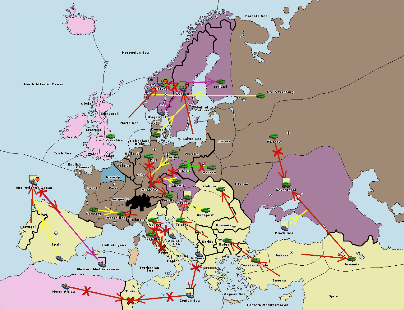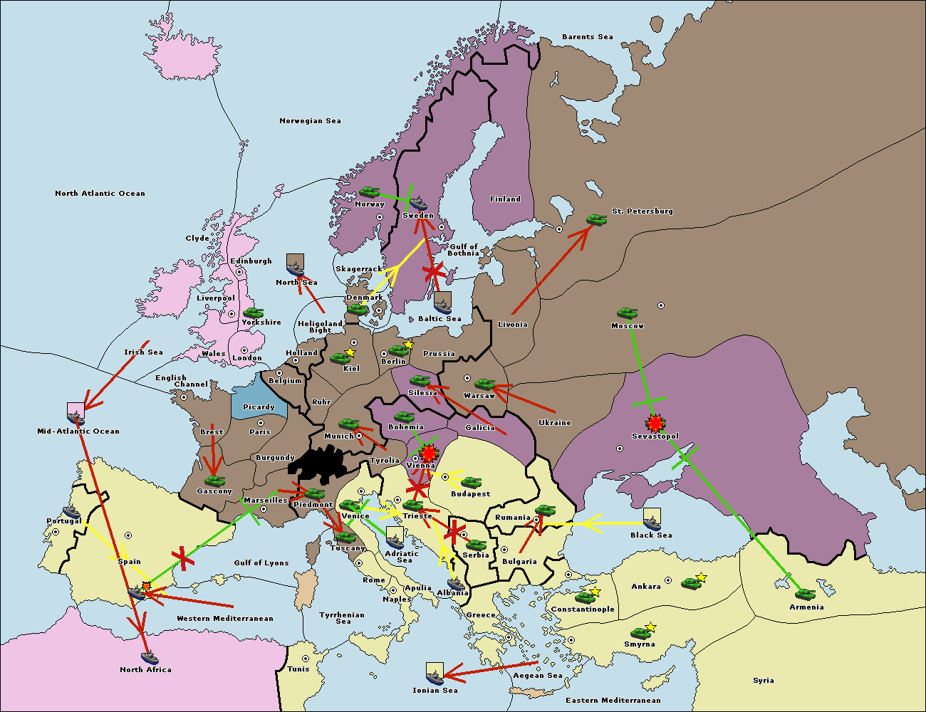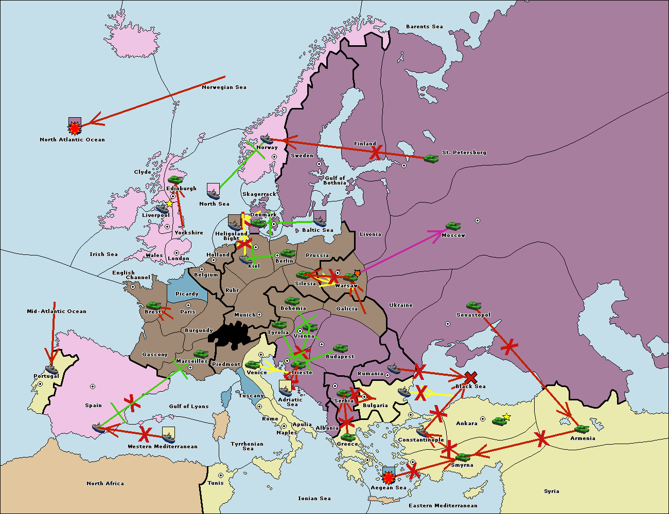 The fleet at Bulgaria (North Coast) support move to Black Sea from Constantinople.