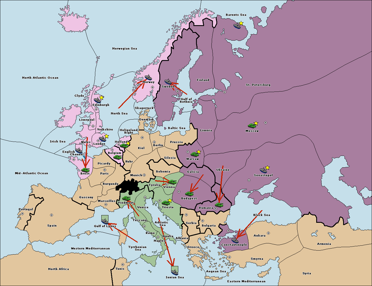 The fleet at St. Petersburg (North Coast) move to Barents Sea.