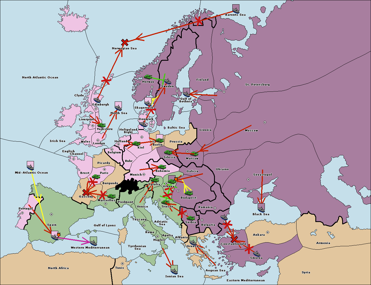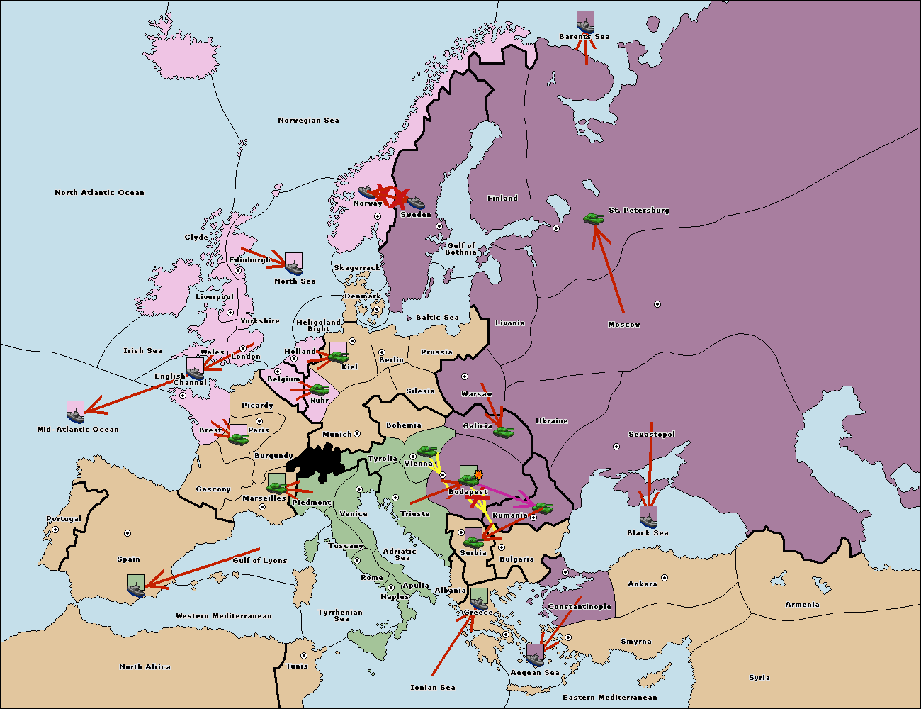 The fleet at Spain (South Coast) support hold to Marseilles.